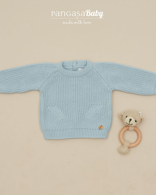 Jersey Punto Perlado Celeste Empolvado 🧶 Pearl Knit - Pangasa Baby