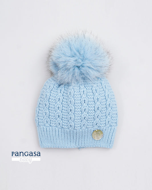 Gorro Orejero Pompón Pelo Celeste Empolvado - Pangasa Baby