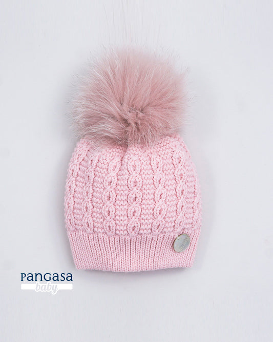Gorro Orejero Pompón Pelo Rosa Empolvado - Pangasa Baby