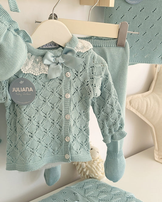 Conjunto Polaina Calado Lazo Verde Agua - Colección Tramontana de Juliana