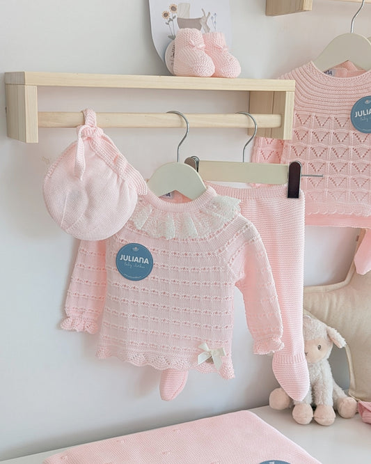 Conjunto Polaina Calado Lazo Rosa - Colección Tramontana de Juliana