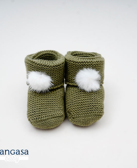 Botita Pompón Bebé Verde Musgo - Pangasa Baby