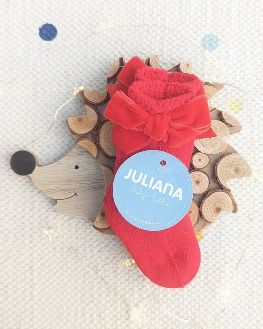 Calcetin Lazo Terciopelo Rojo - Juliana