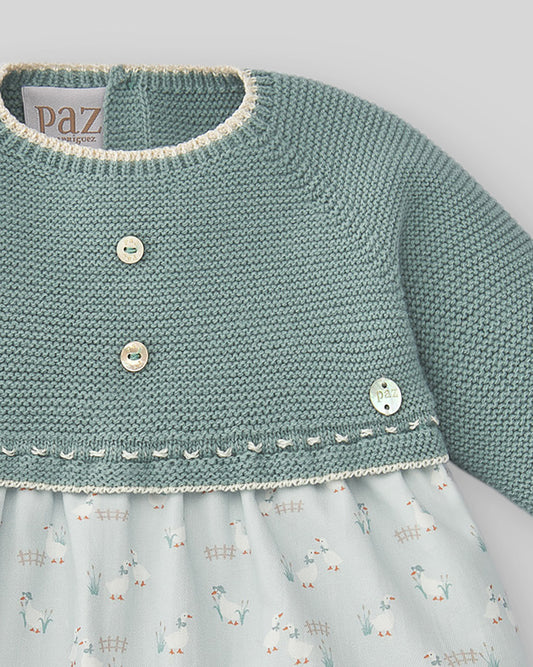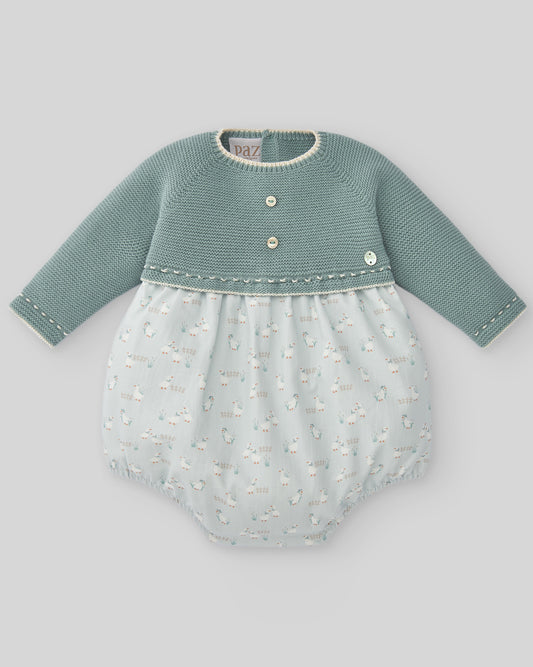 Pelele Punto y Tela Plumety Azul Tiza 005-102906 - Paz Rodriguez
