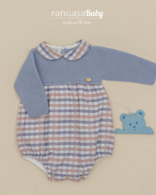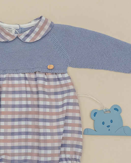 Pelele Tela Cuadros Celeste Empolvado Familia Little Vichy - Pangasa Baby