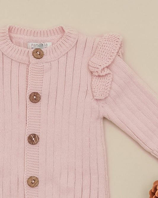 Pelele Punto Largo Volantes Rosa Empolvado - Pangasa Baby