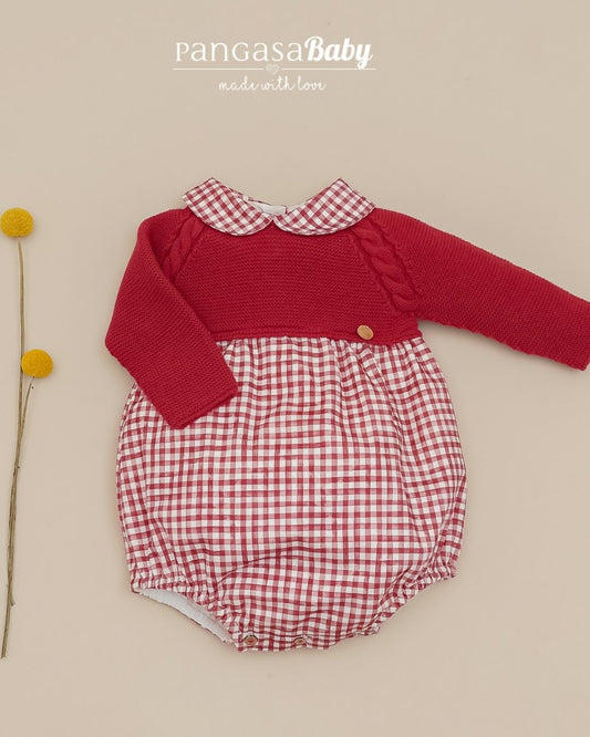 Pelele Tela Cuadros Granate Cereza 💖 Rouge Couture - Pangasa Baby