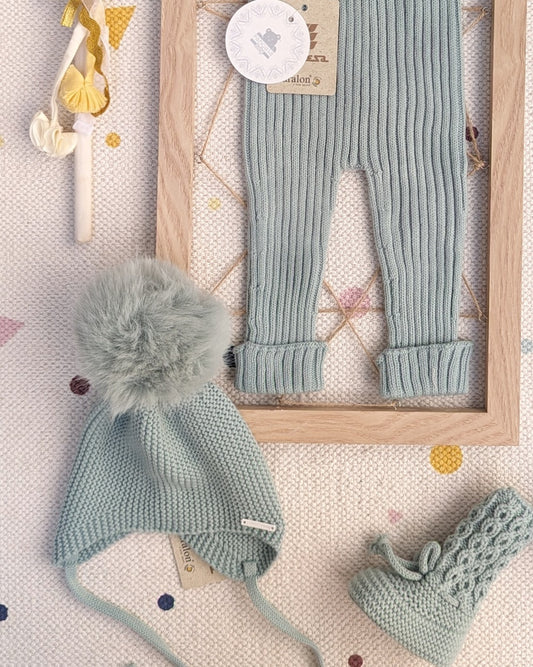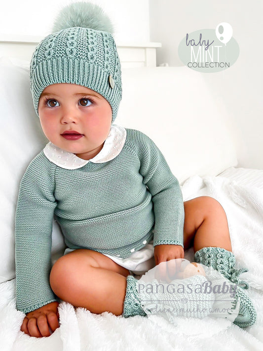Botita Pompón Bebé Verde Empolvado - Pangasa Baby
