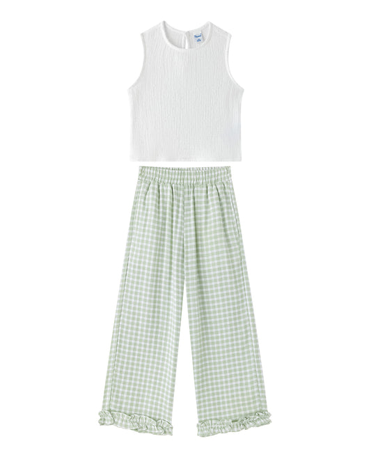 Conjunto Niña Blusa y Pantalón Largo Vichy Verde