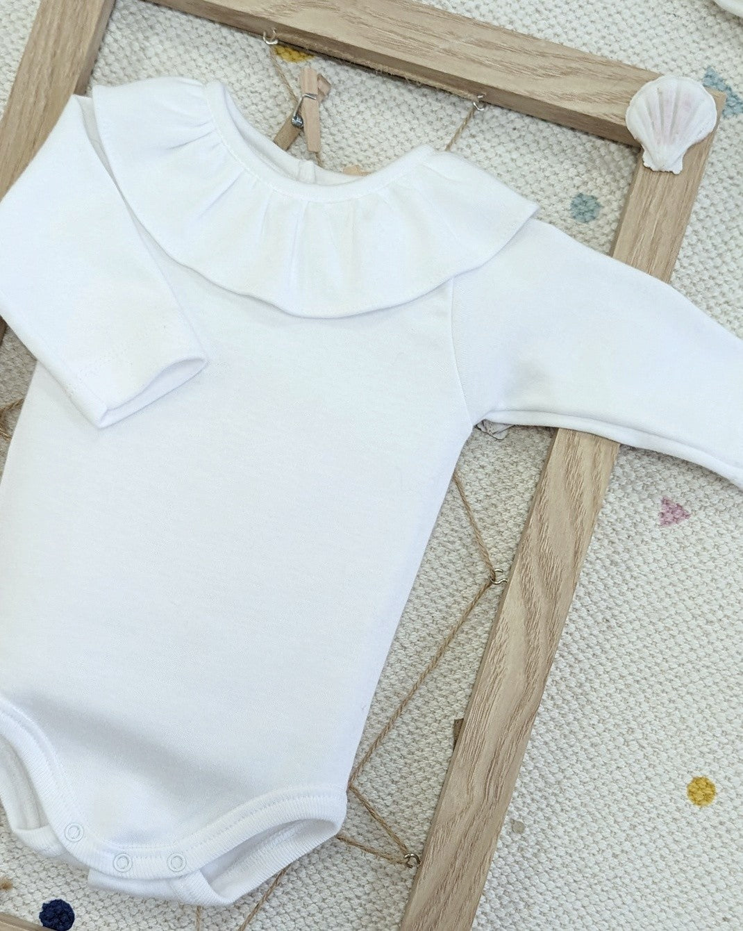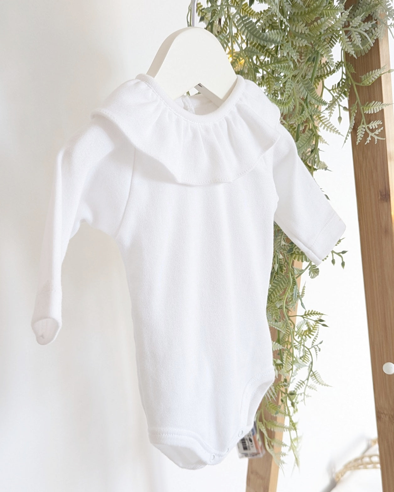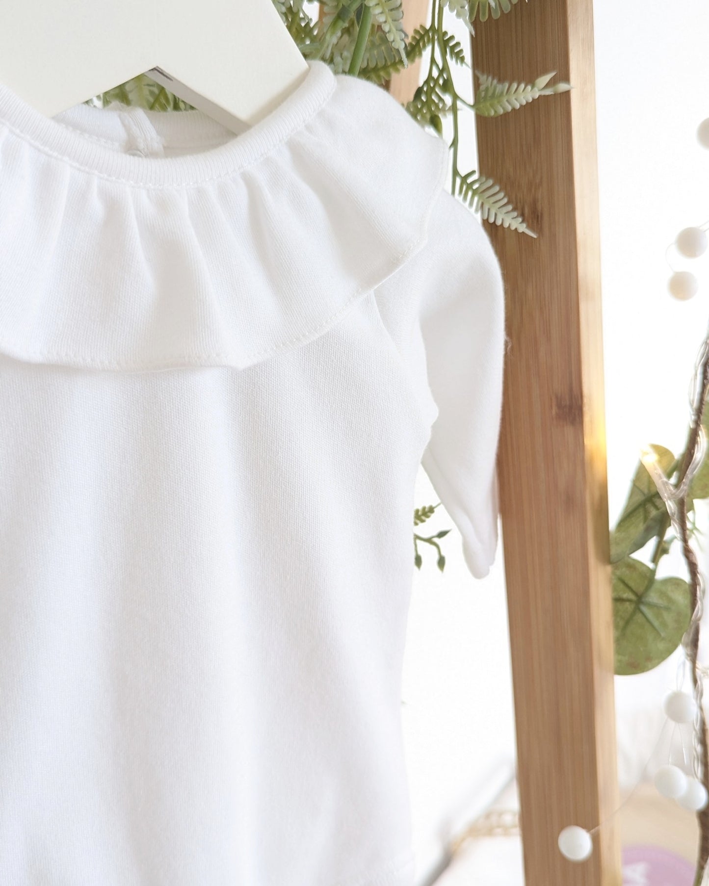 Body de Babidu con cuello de volante blanco de la nueva temporada.