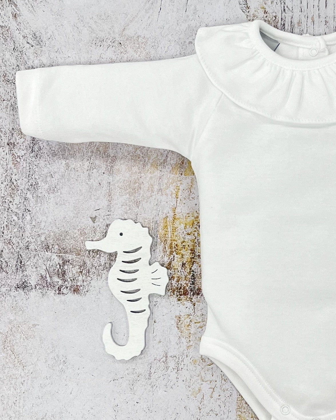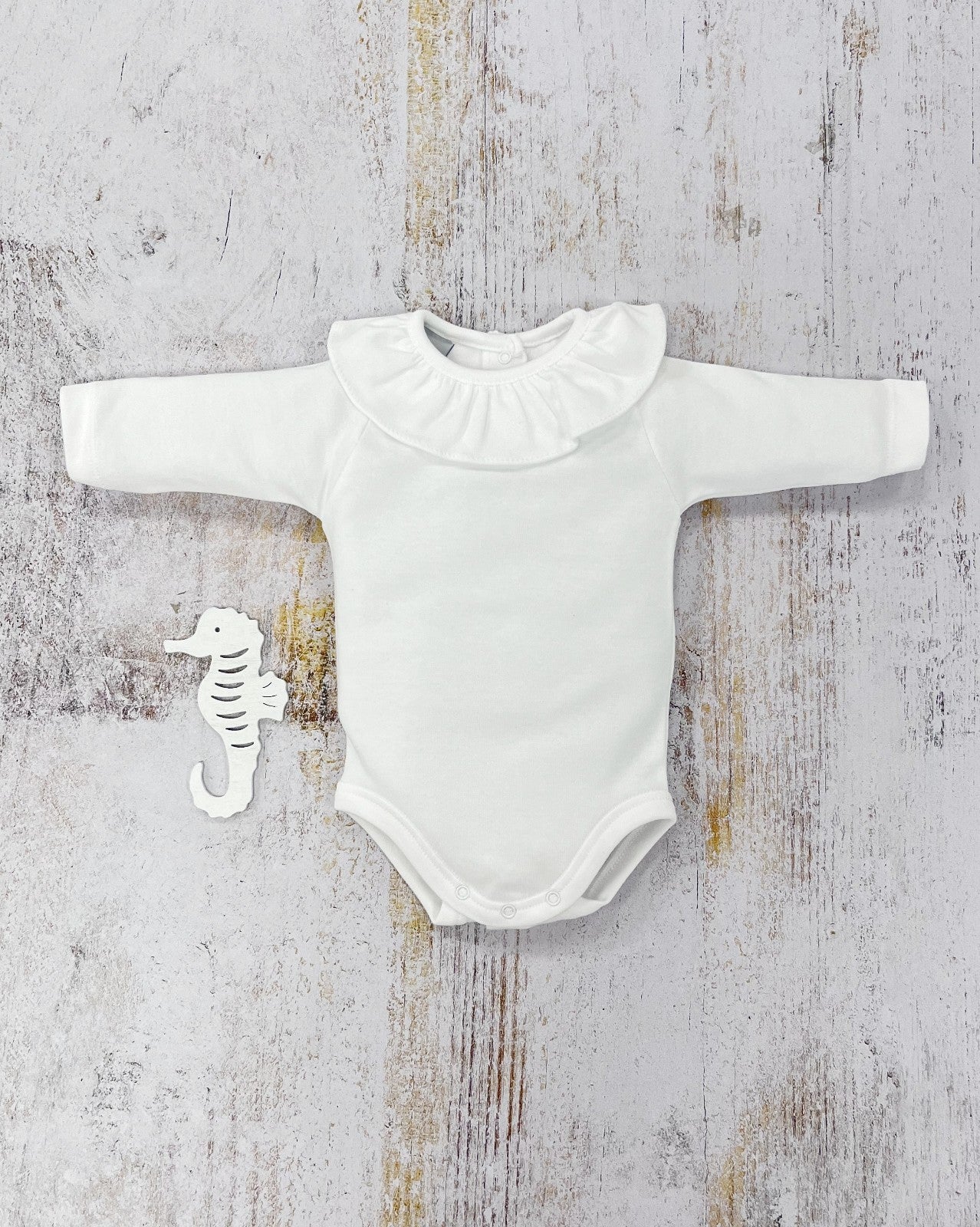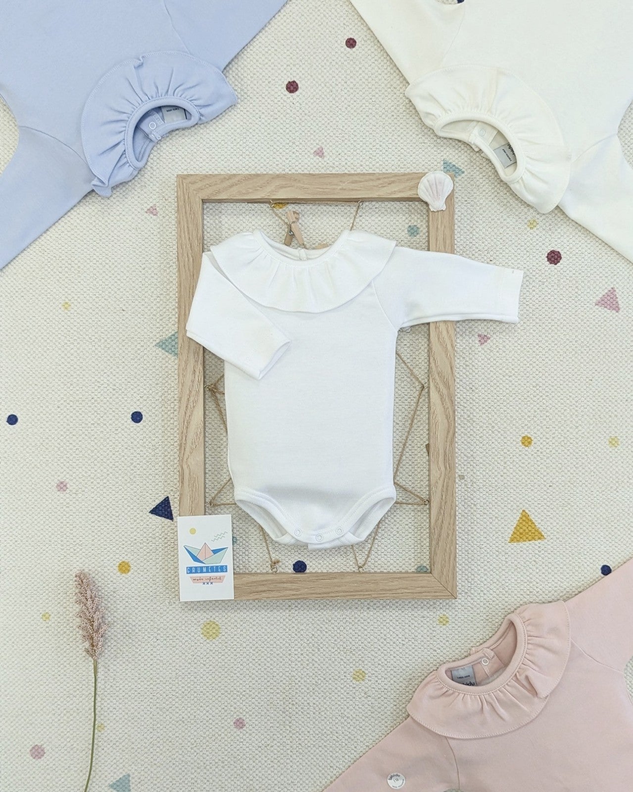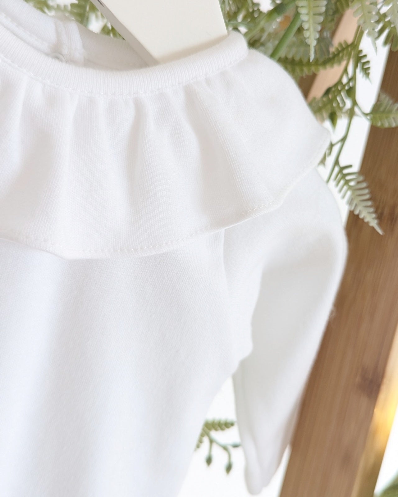 Body de Babidu con cuello de volante blanco de la nueva temporada.