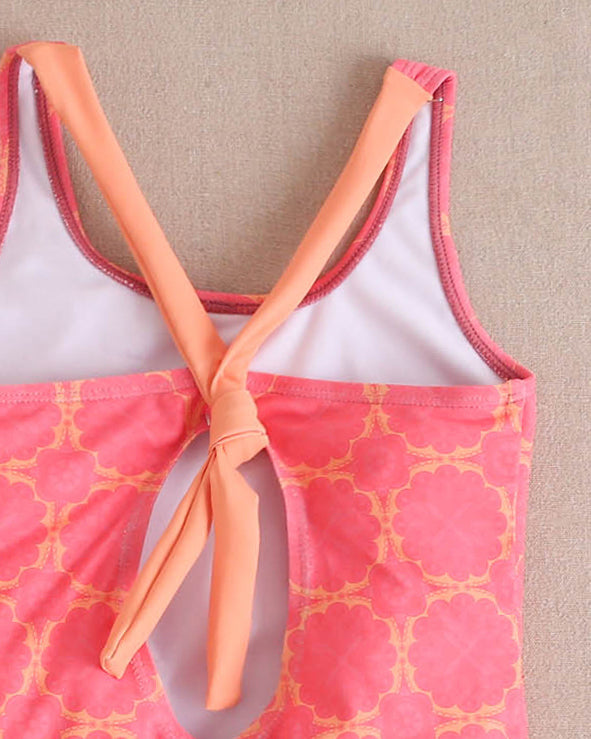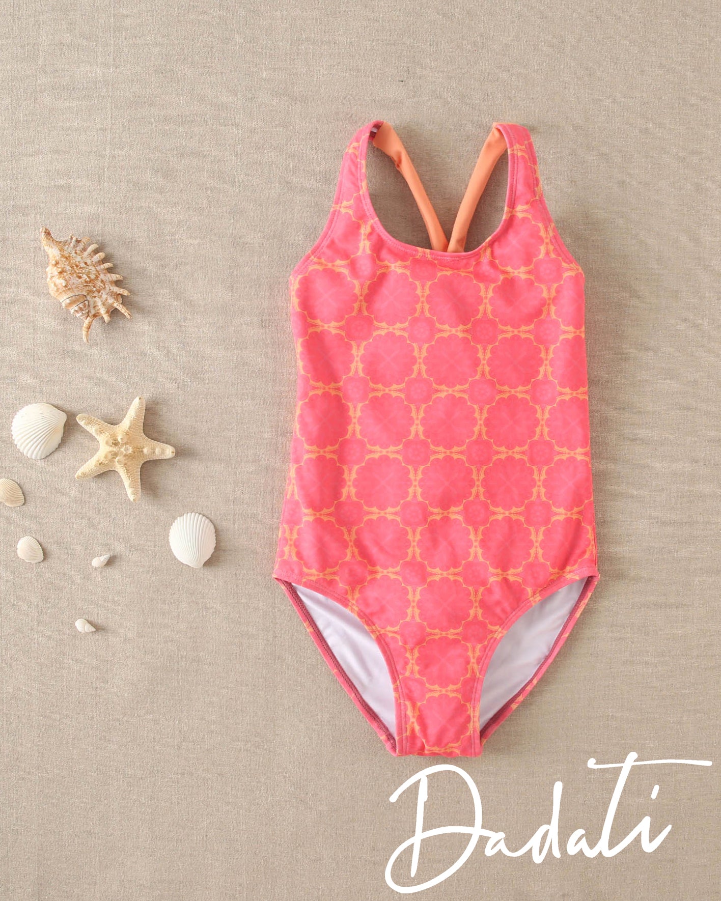 Bañador Niña Cruzado Retro Naranja y Fucsia - Dadati