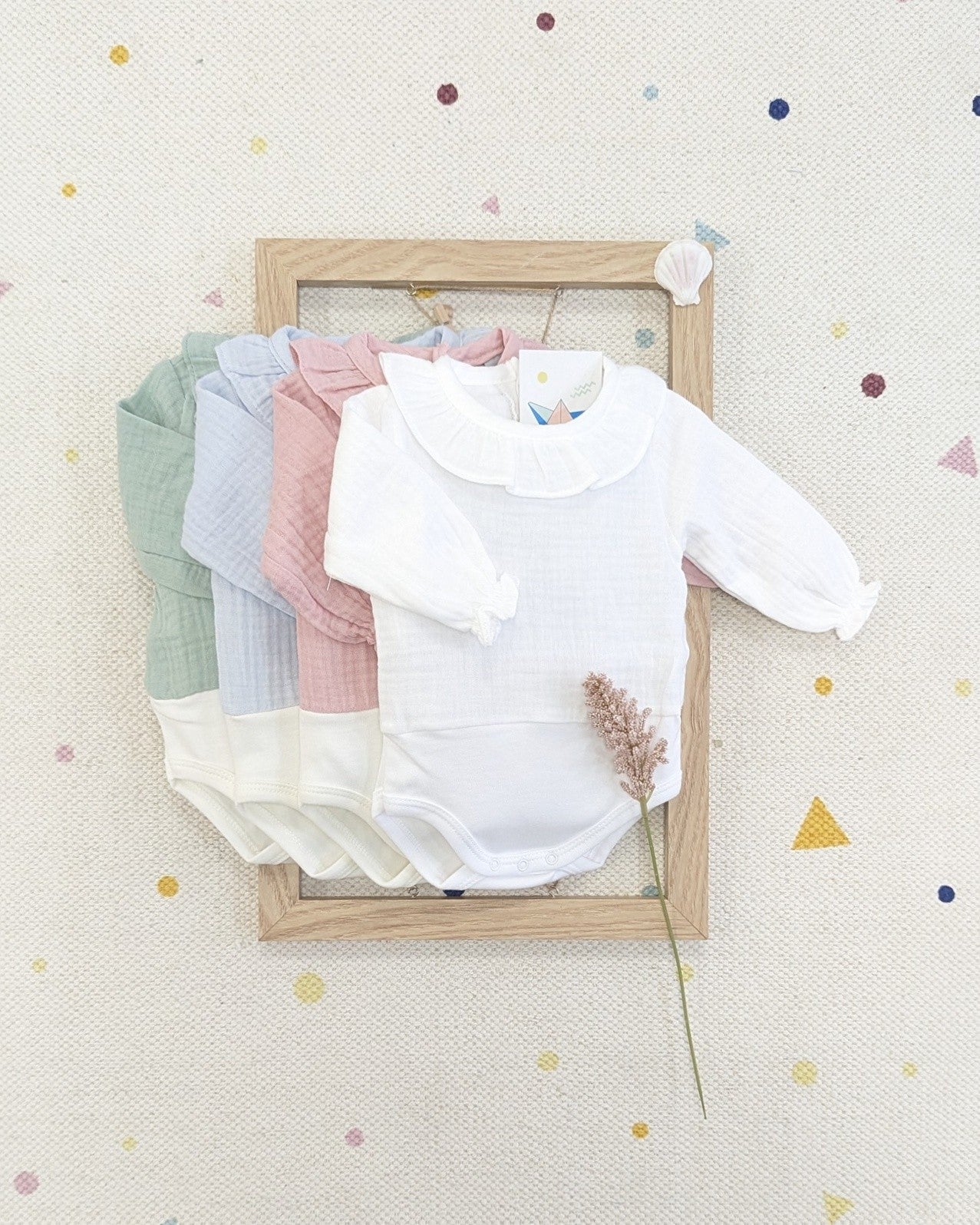Precioso body de bebé unisex ideal para combinar con petos, braguitas, ranitas, pichis.