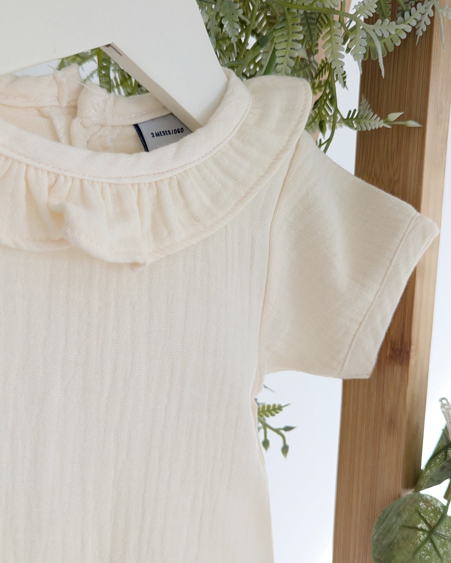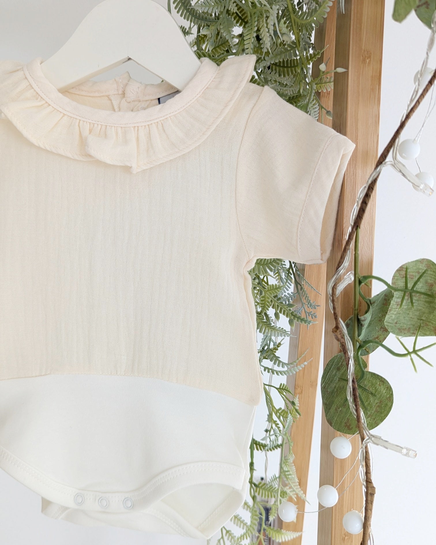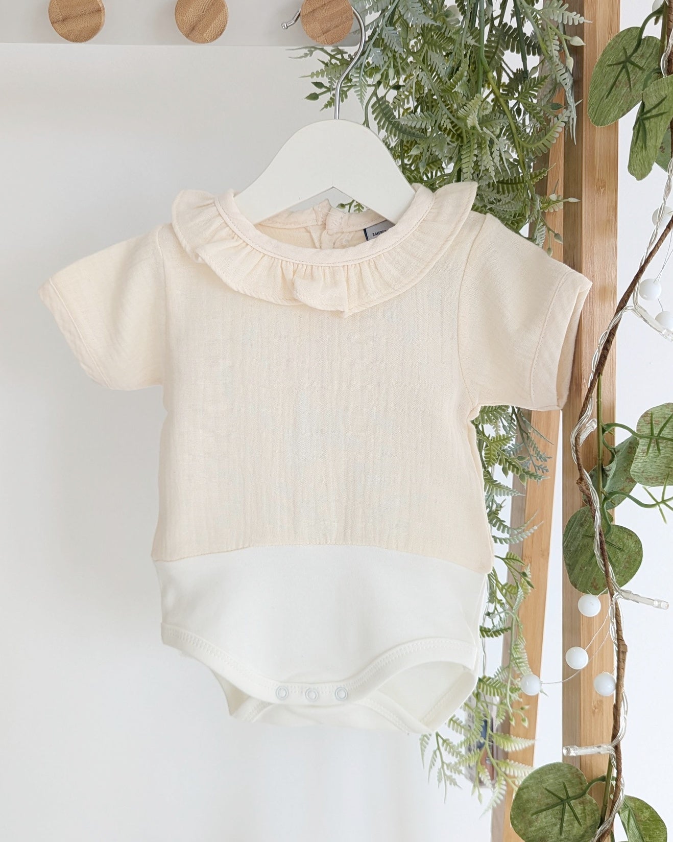 - Body Manga Corta Cuello Volante Bambula Beige- Babidu