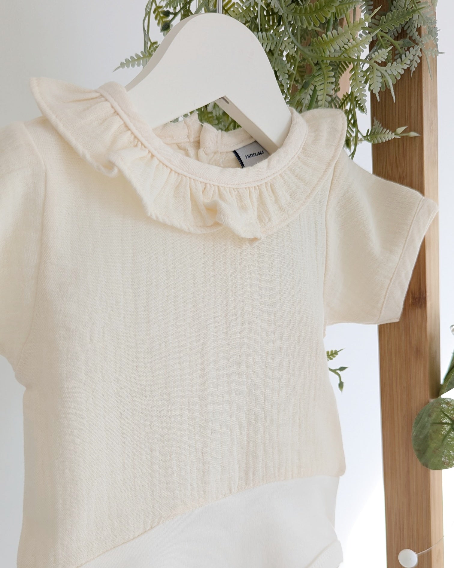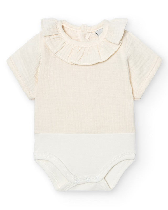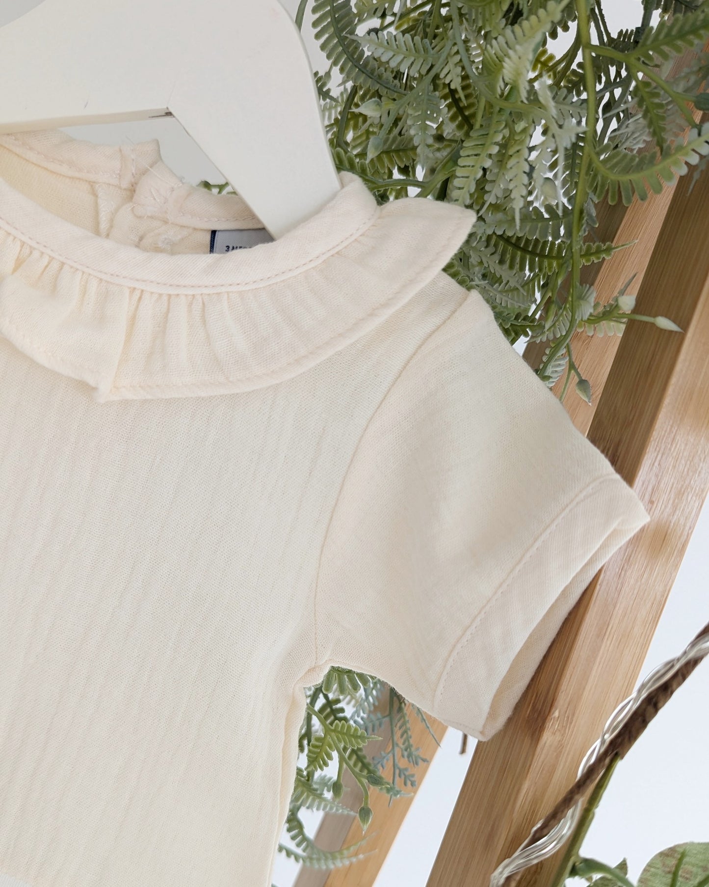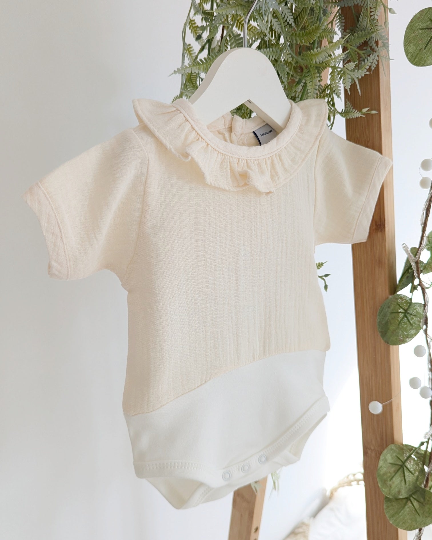 - Body Manga Corta Cuello Volante Bambula Beige- Babidu