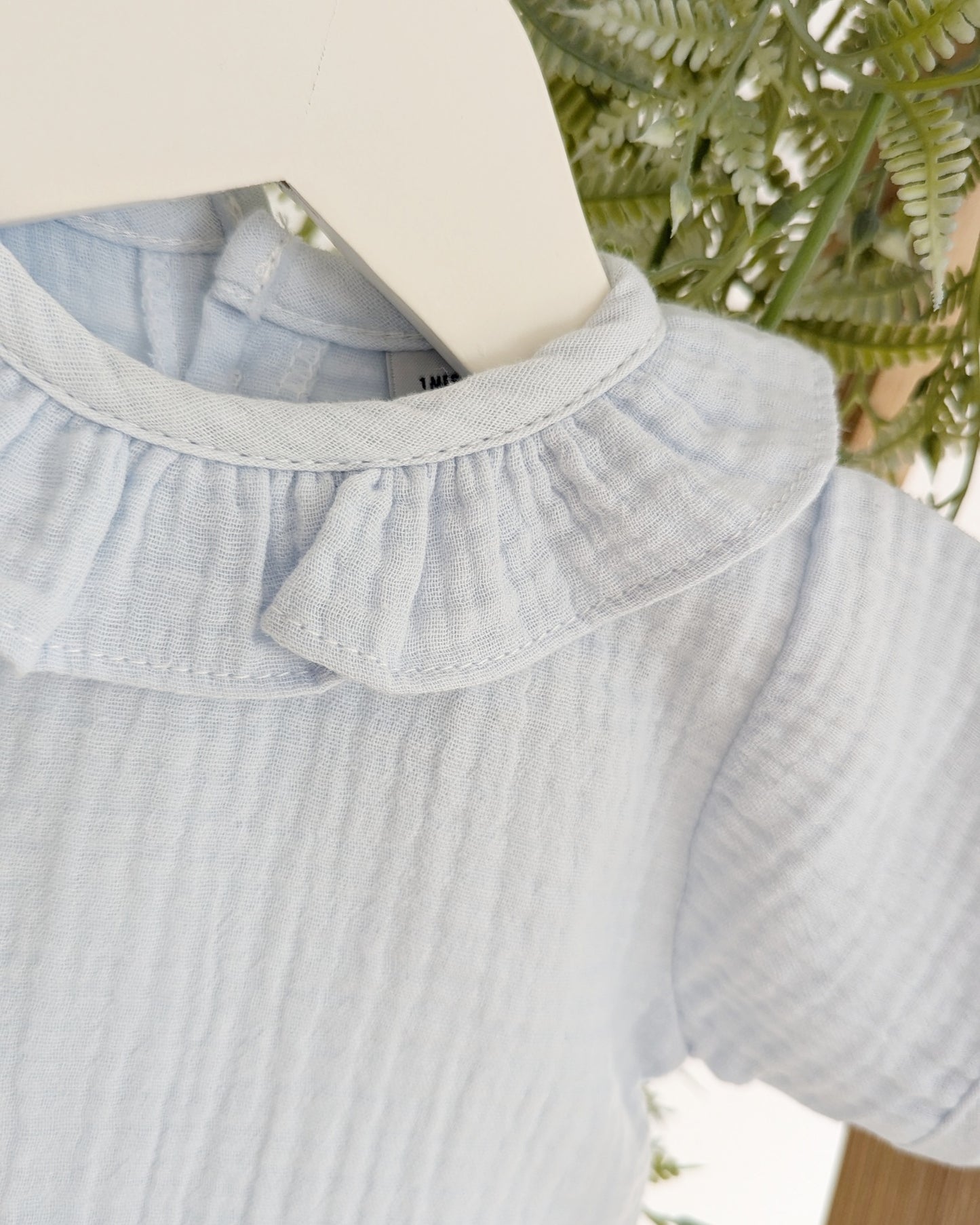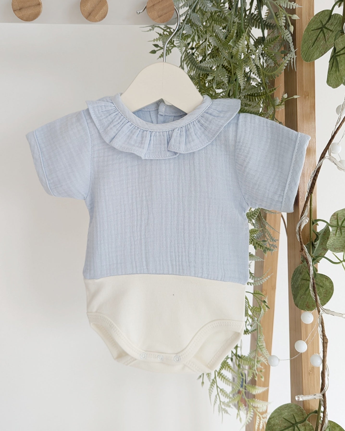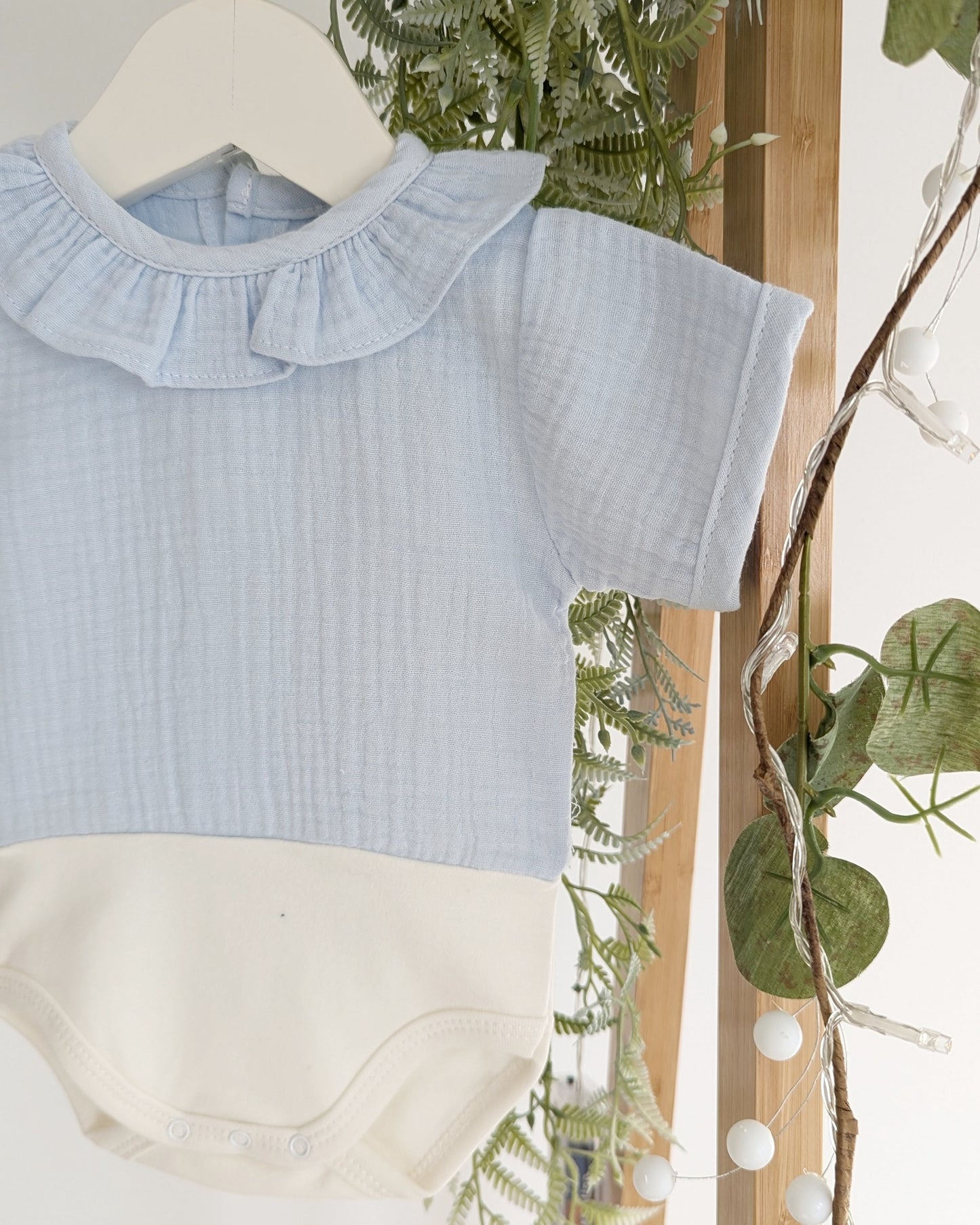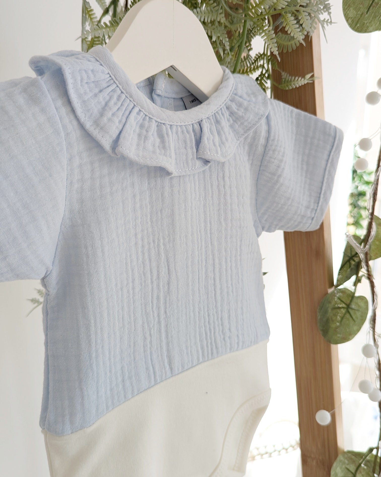 - Body Manga Corta Cuello Volante Bambula Celeste - Babidu
