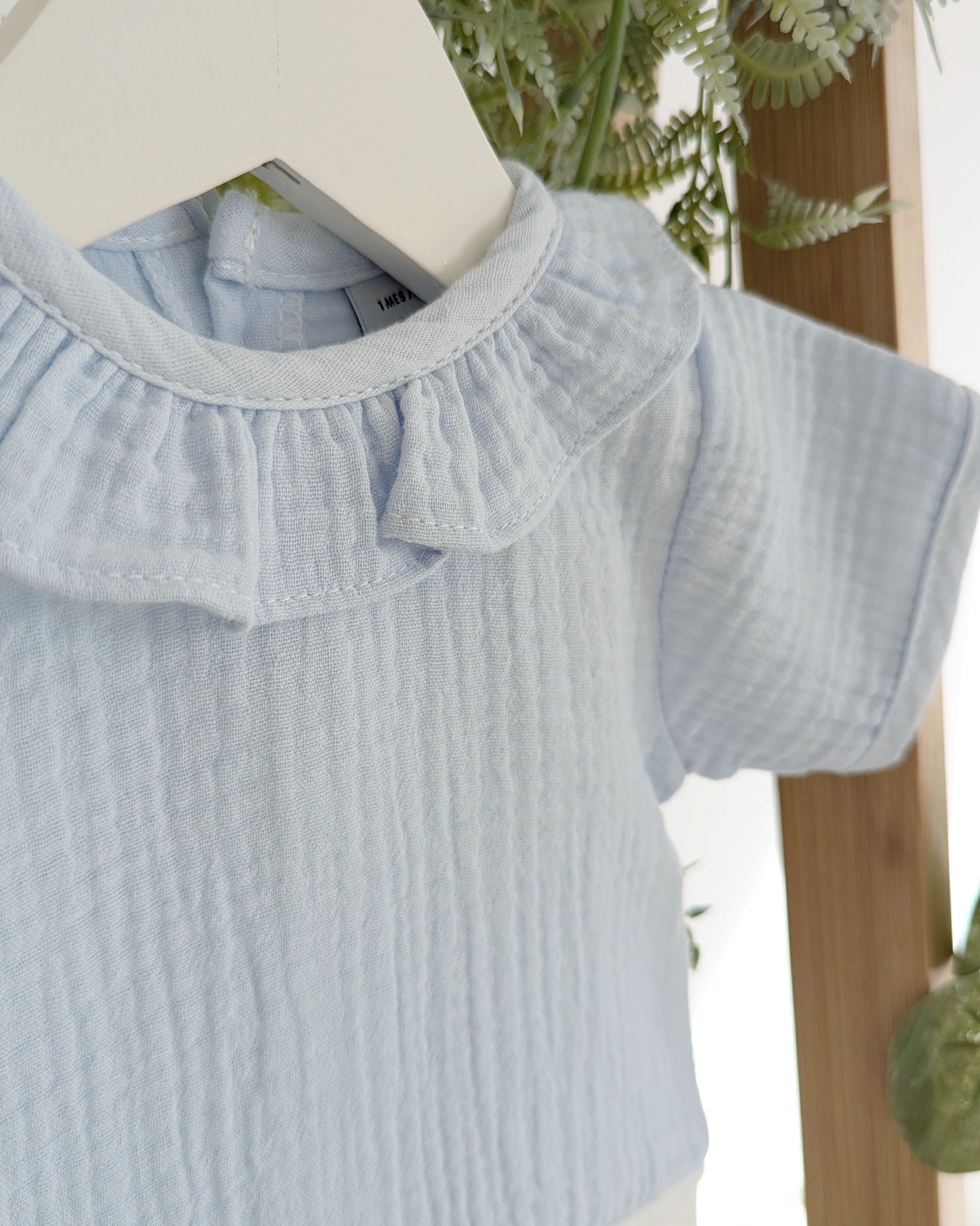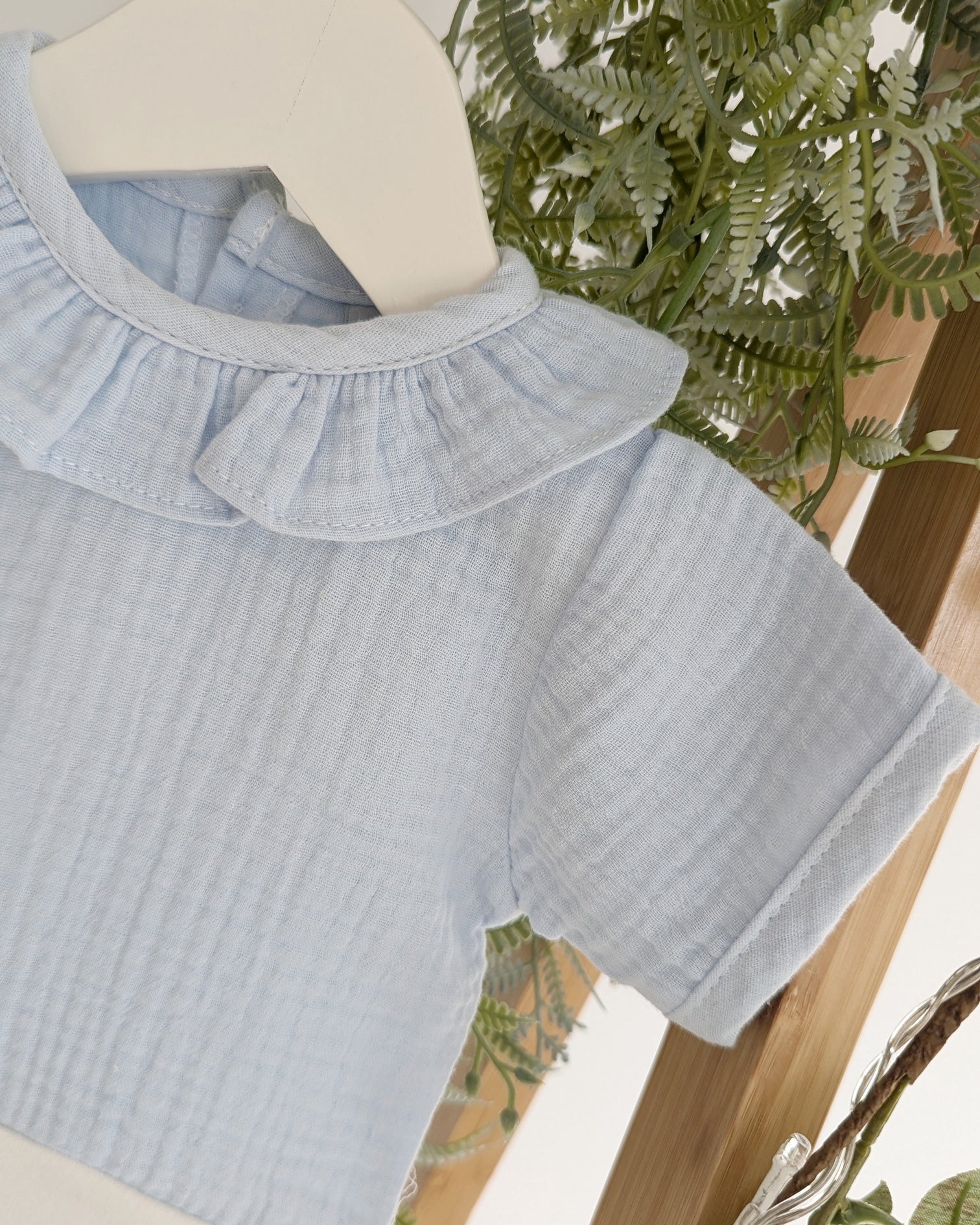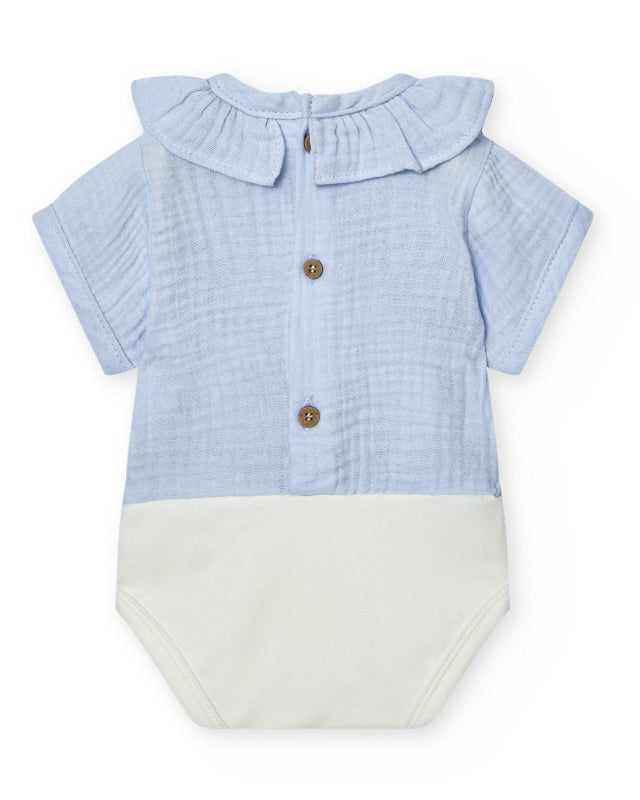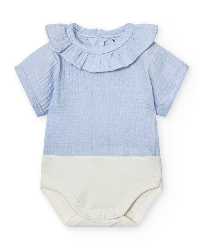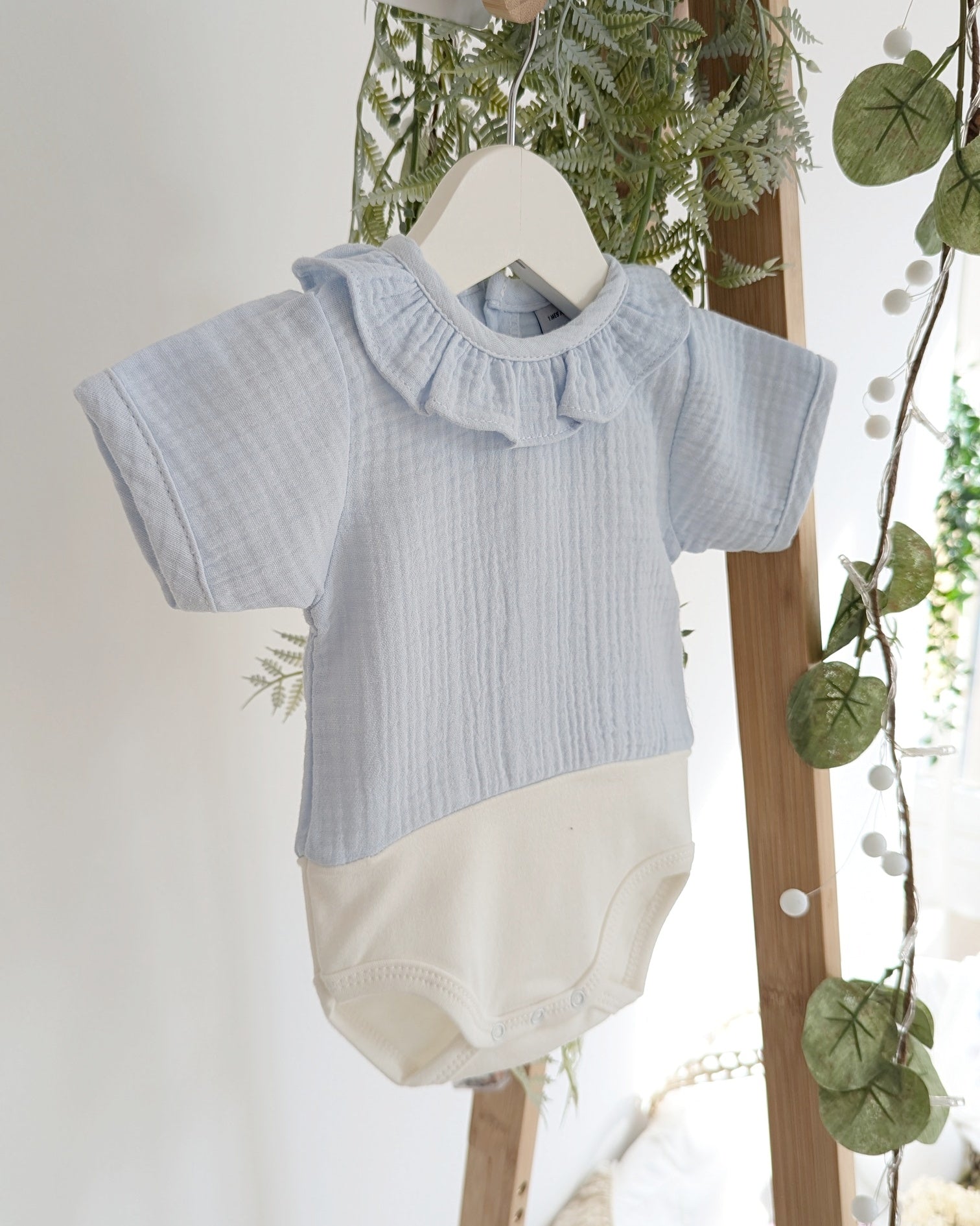 - Body Manga Corta Cuello Volante Bambula Celeste - Babidu