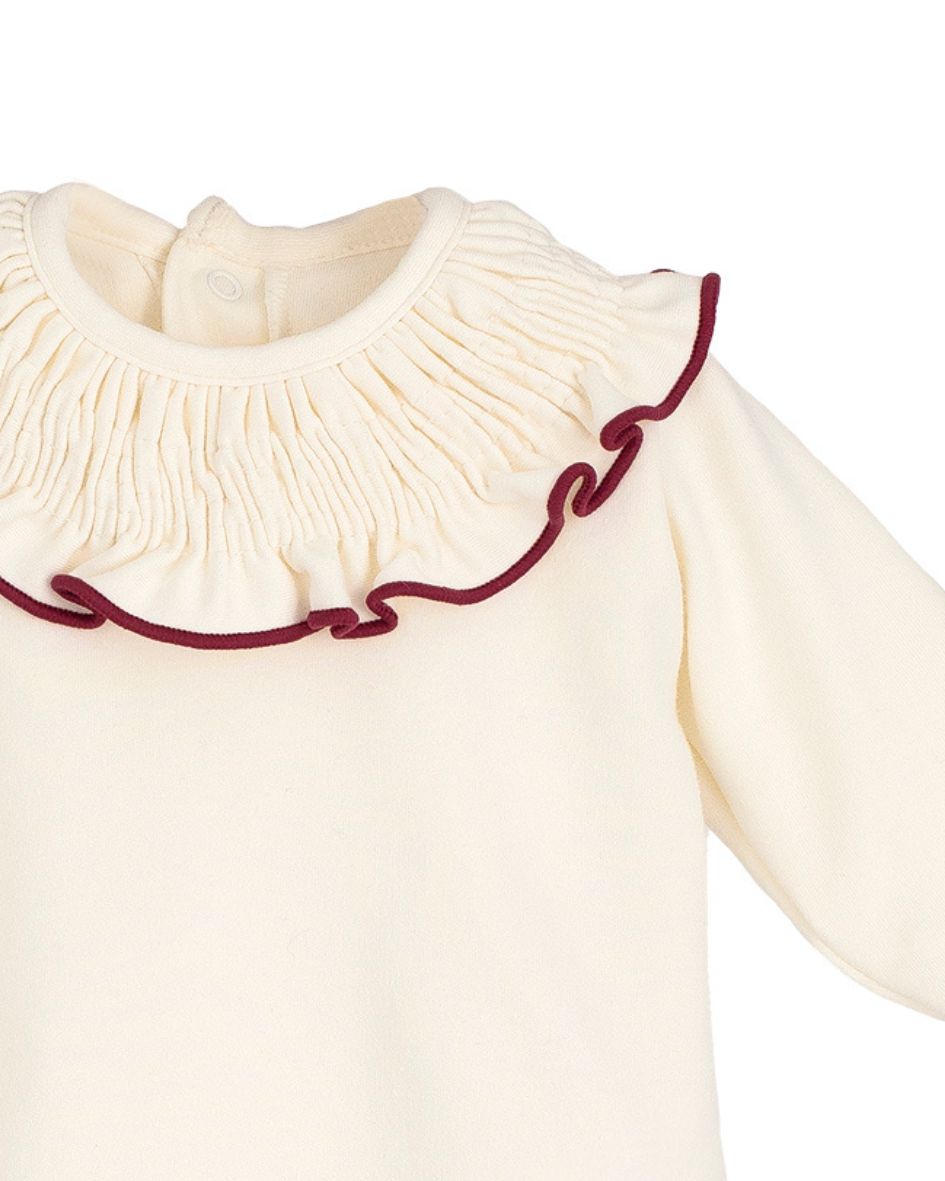Comprar online el body para bebé de Calamaro Baby, con cuello de volante y diseño exclusivo, en www.tiendagrumetes.es, la mejor tienda online de España para ropa de bebé elegante y de calidad.