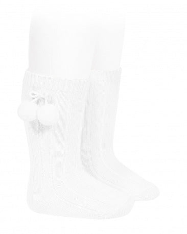 Calcetín Alto Canalé con Borlas Blanco 200 - Cóndor