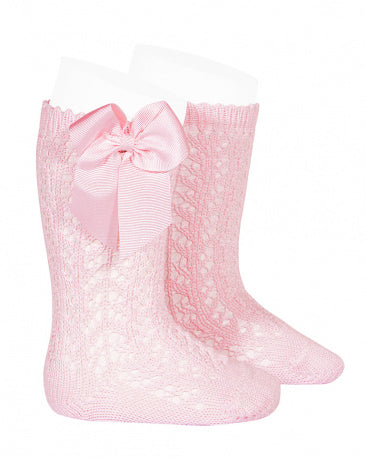 Calcetín Alto Perlé Calado Lazo Grosgrén Rosa 500 - Cóndor
