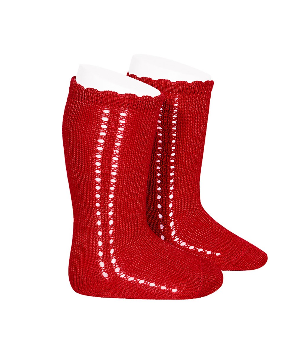 Calcetin Alto Perlé Calado Rojo - Cóndor