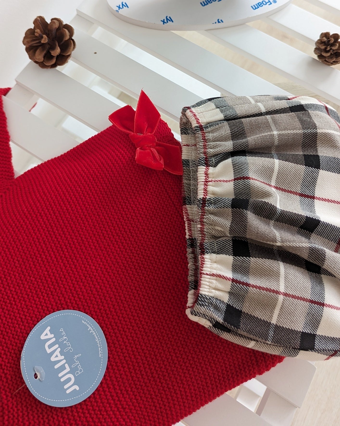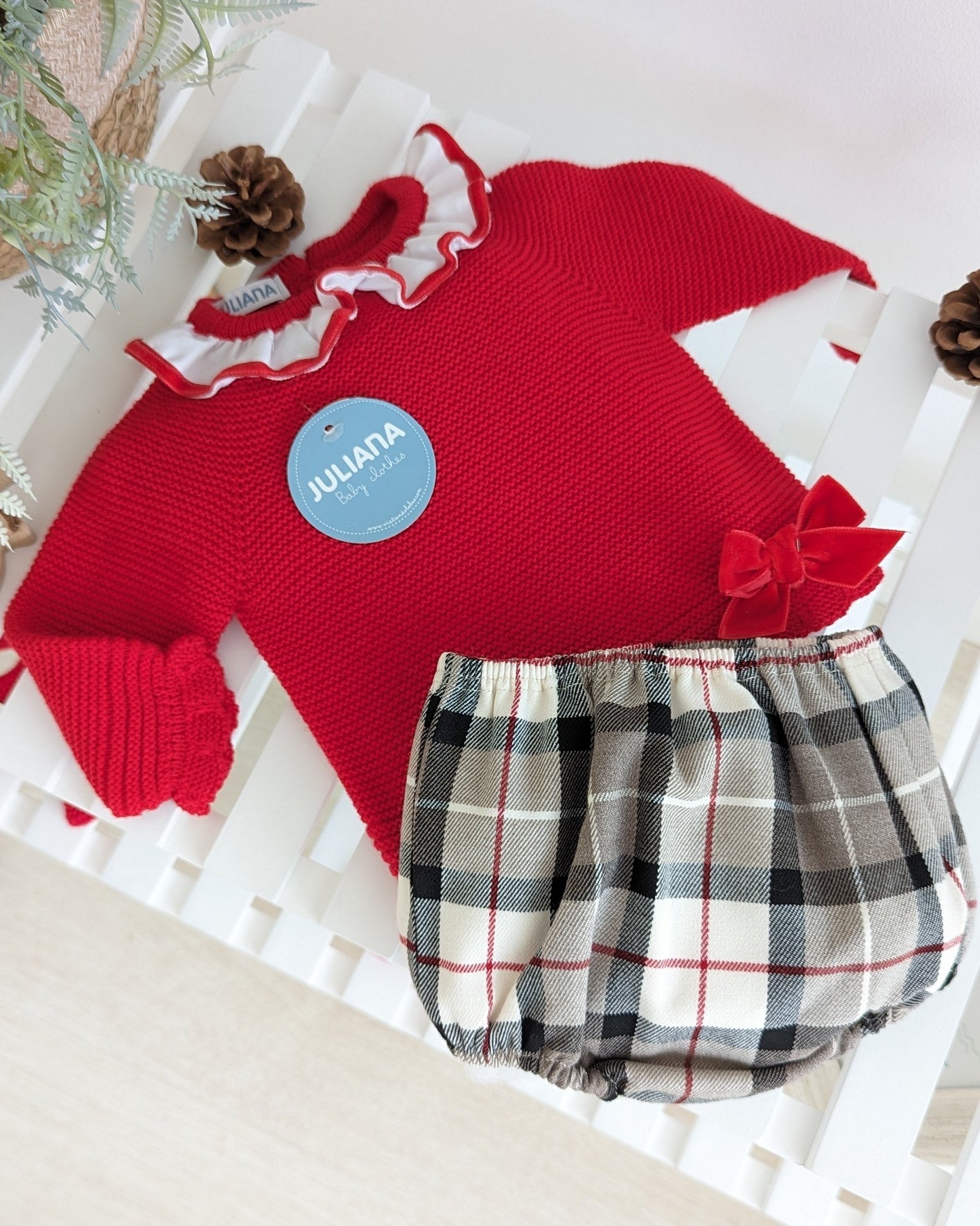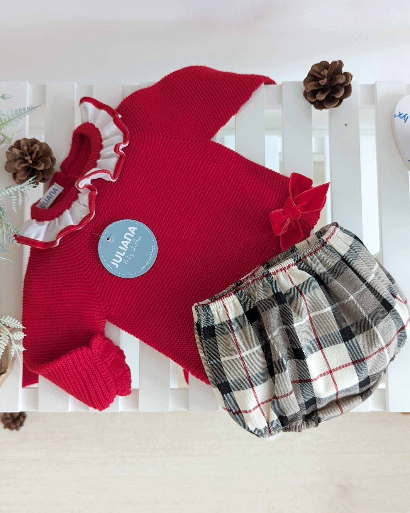 Conjunto Braga Cuadros Rojo - Colección Caricia Juliana