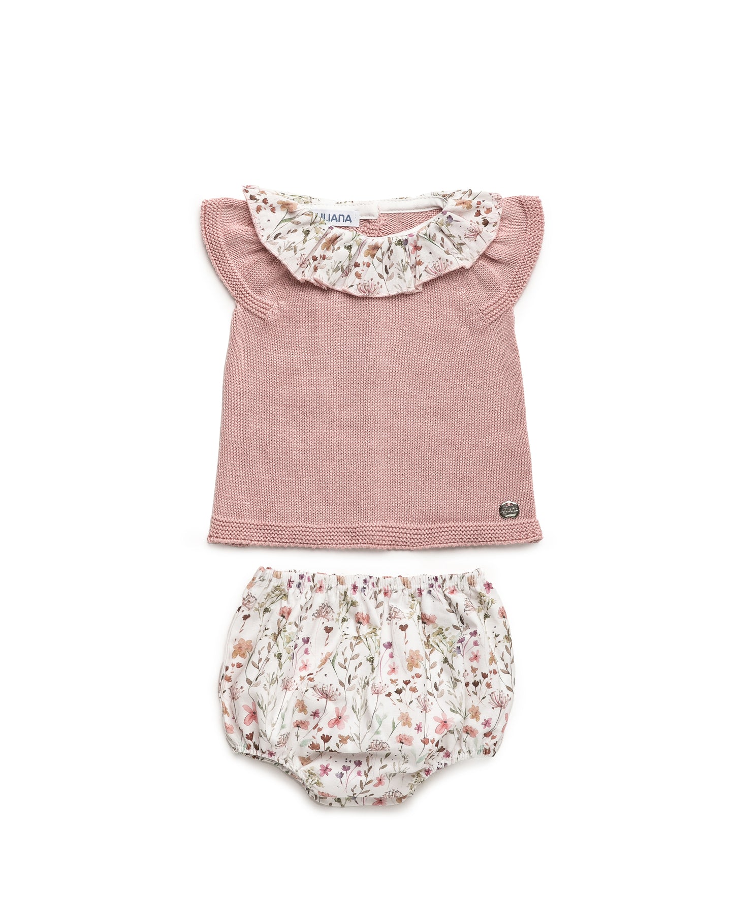 - Conjunto 2 piezas: camiseta de punto y braguita con estampado floral