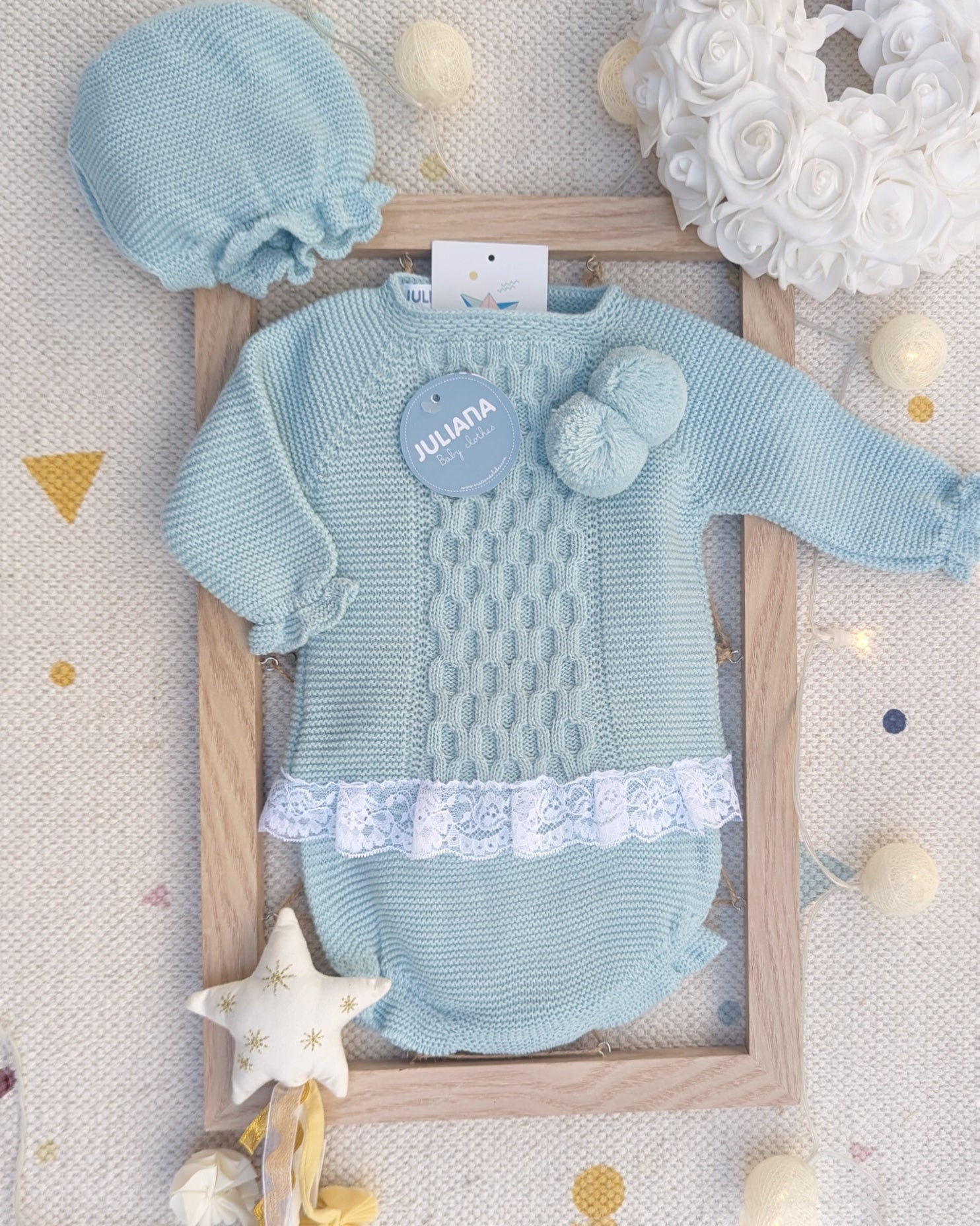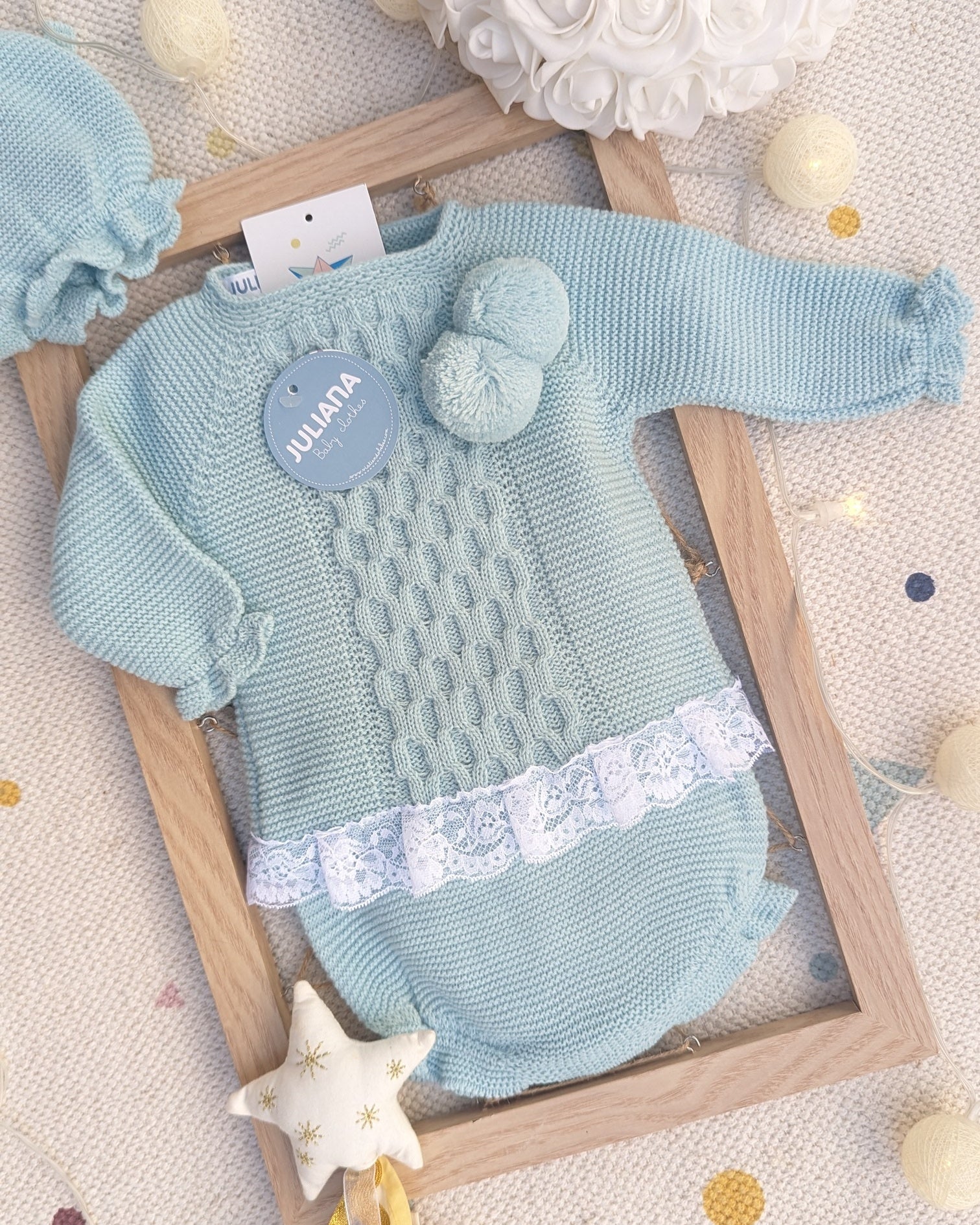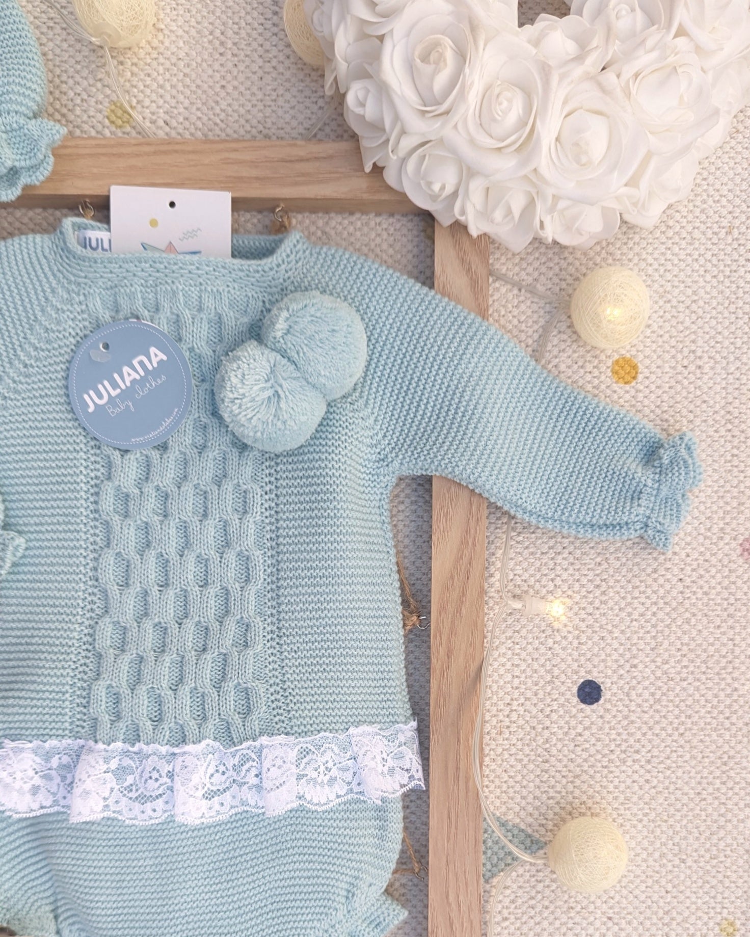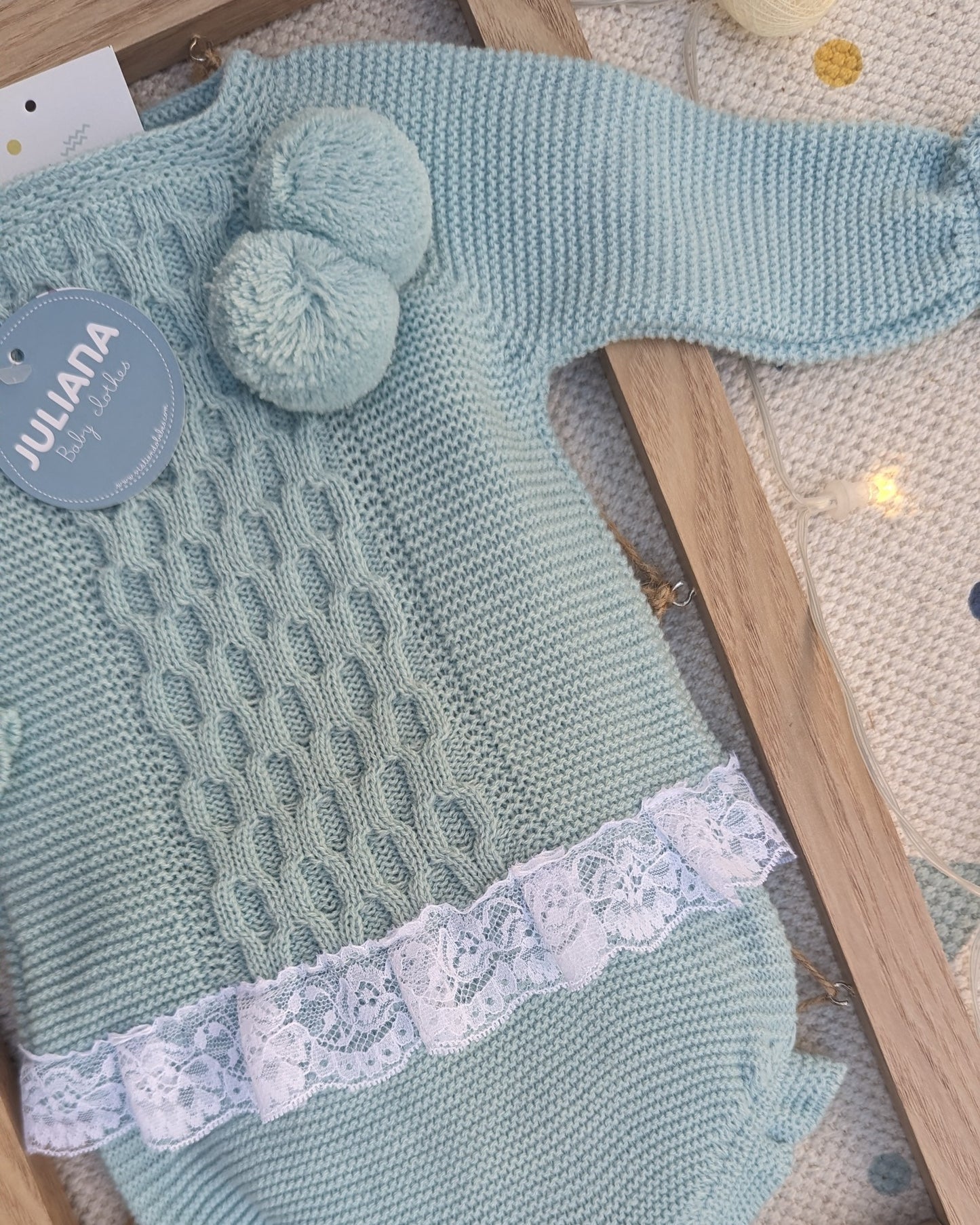 Conjunto Braguita Pompones Verde Agua - Juliana