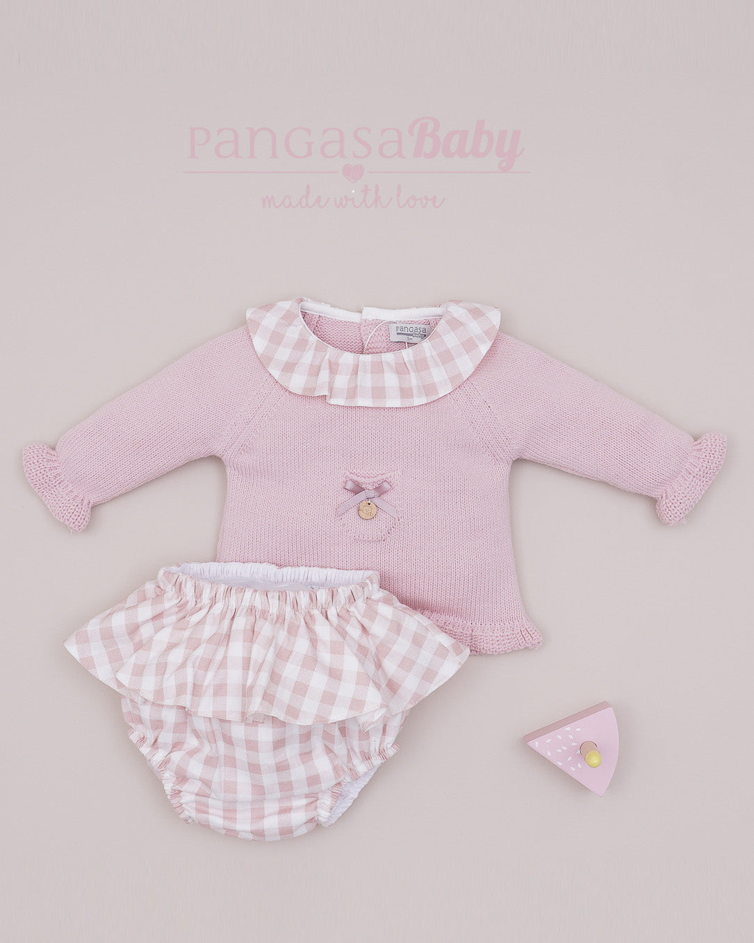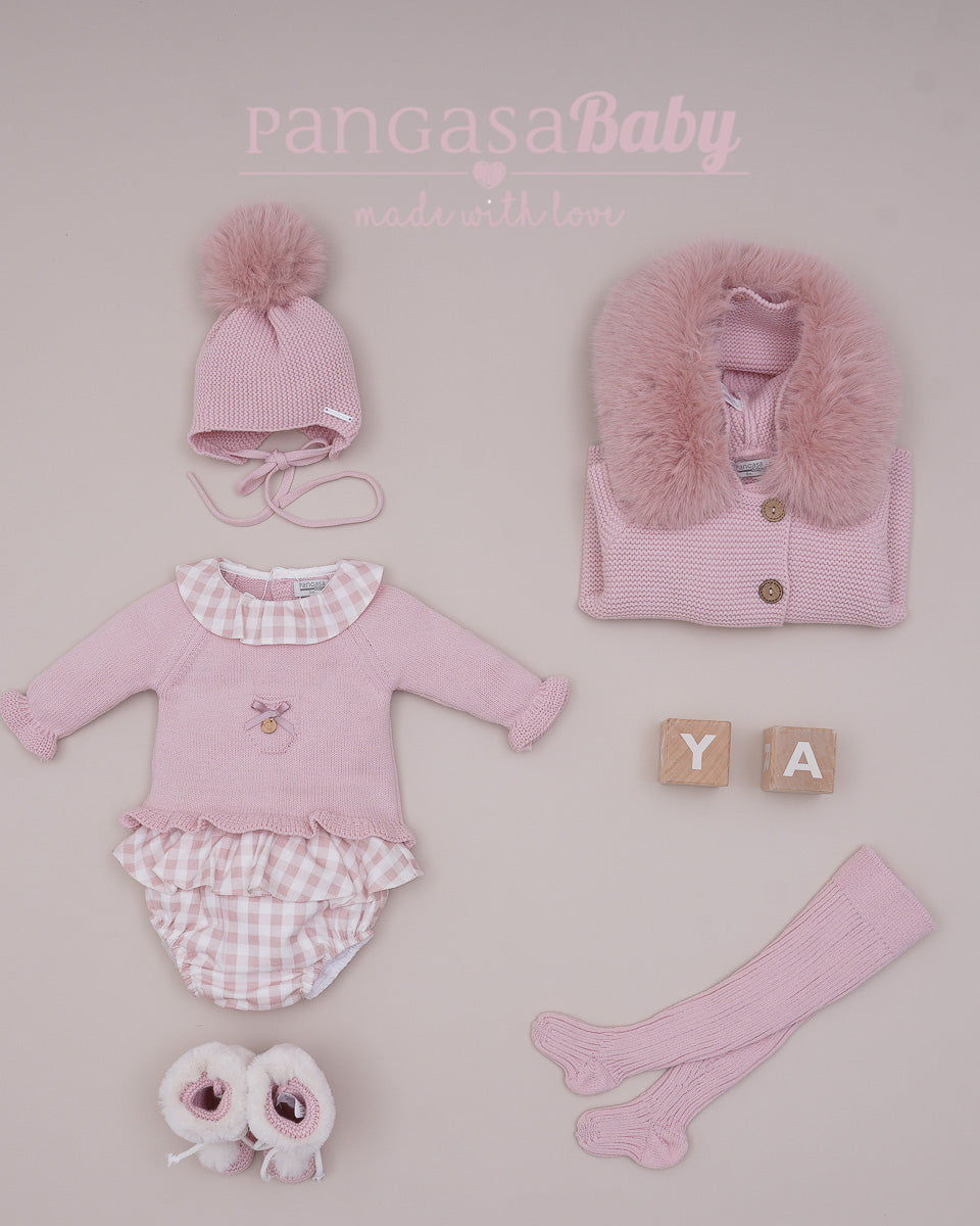 Comprar online Conjunto Braguita Sweet Cake Cuadros Rosa Empolvado para bebé de la Nueva Colección Otoño Invierno 2024 2025 de Pangasa Baby en www.tiendagrumetes.es