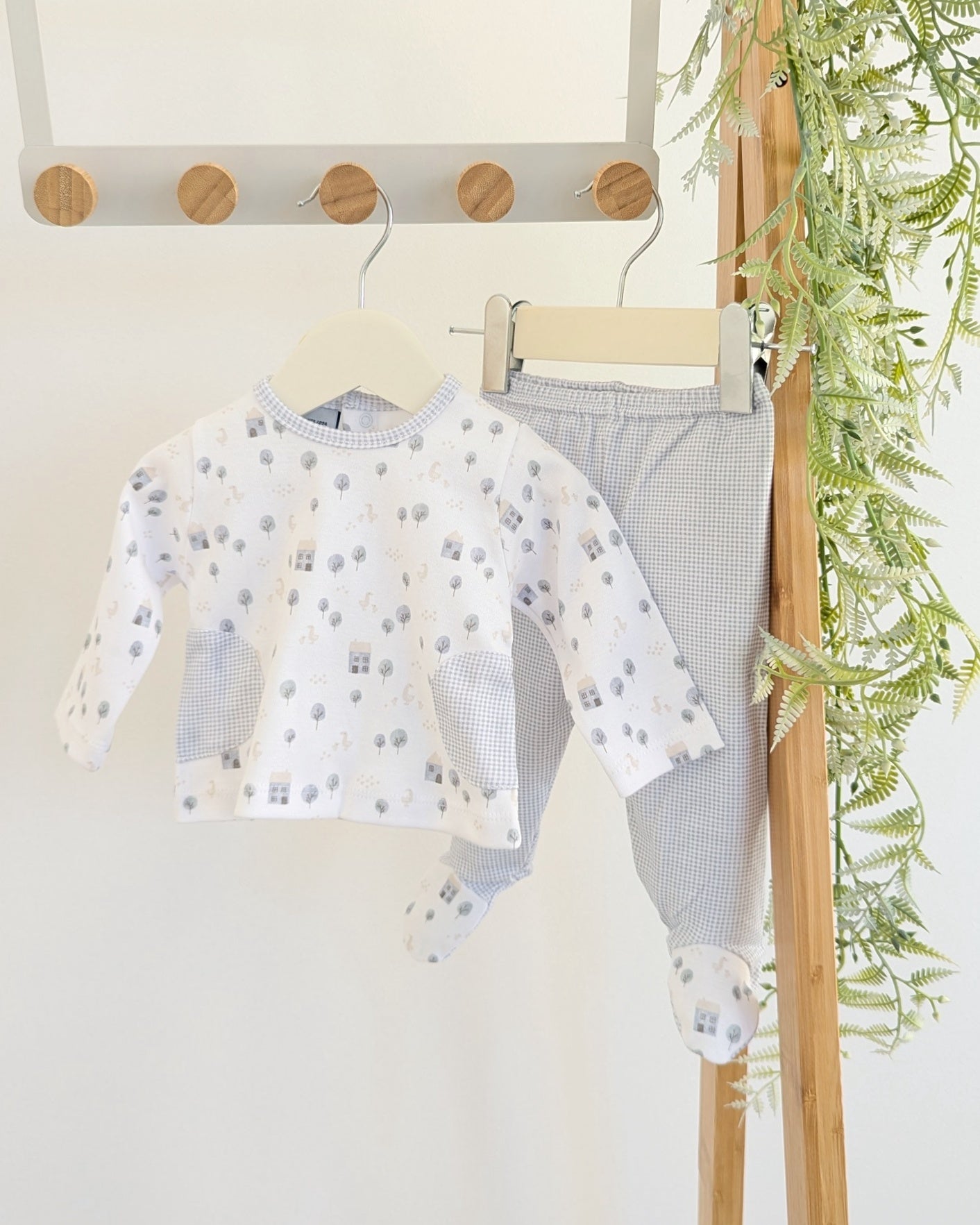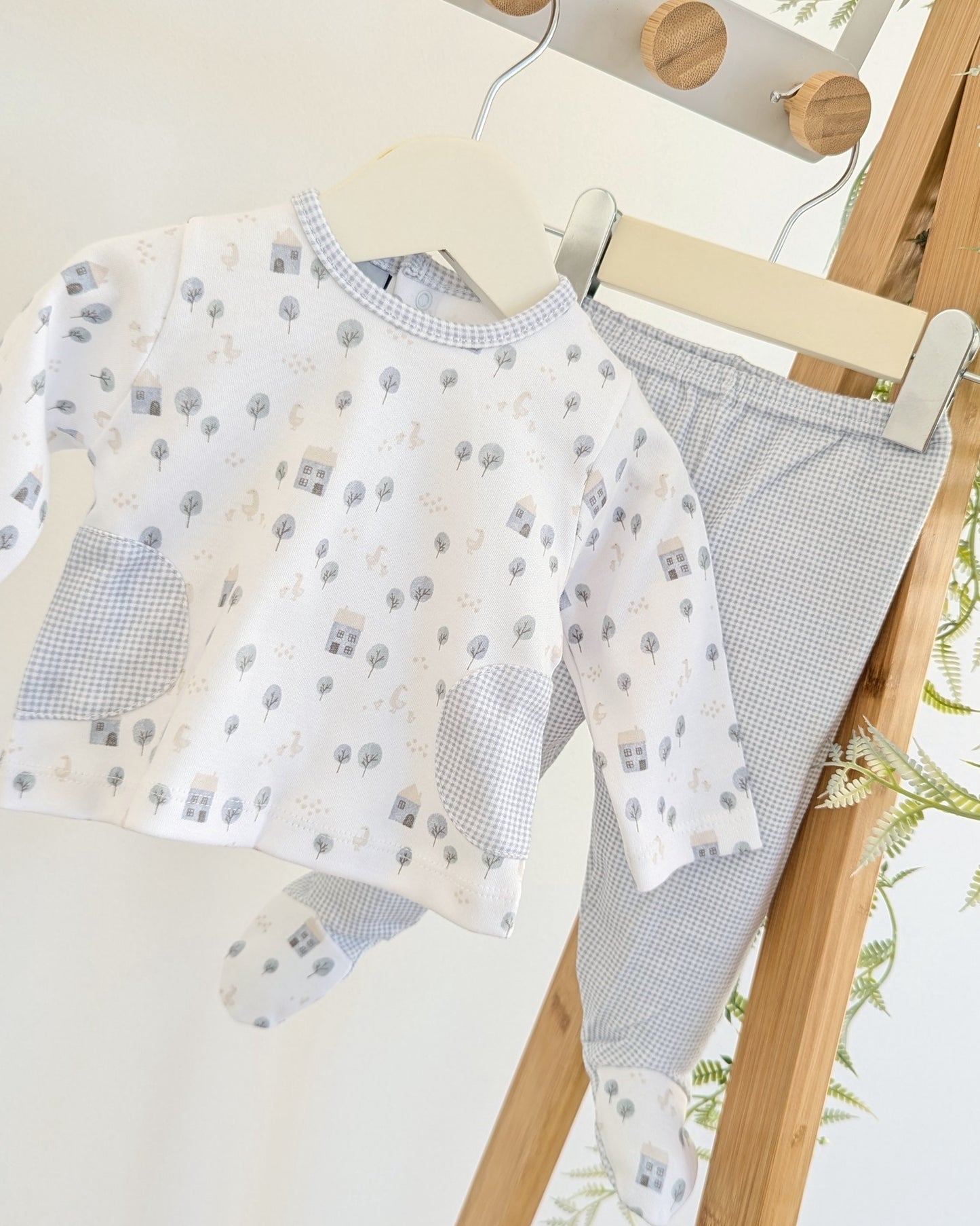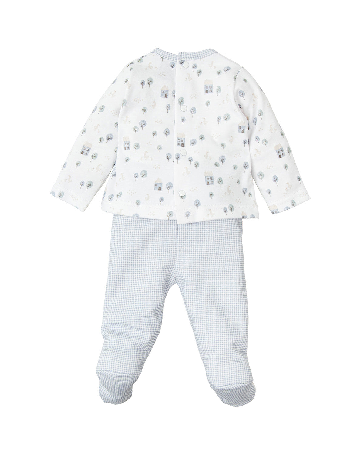 Conjunto ideal para los primeros días de tu bebé. Está fabricado en algodón 100% de máxima calidad totalmente indicado para pieles atópicas.