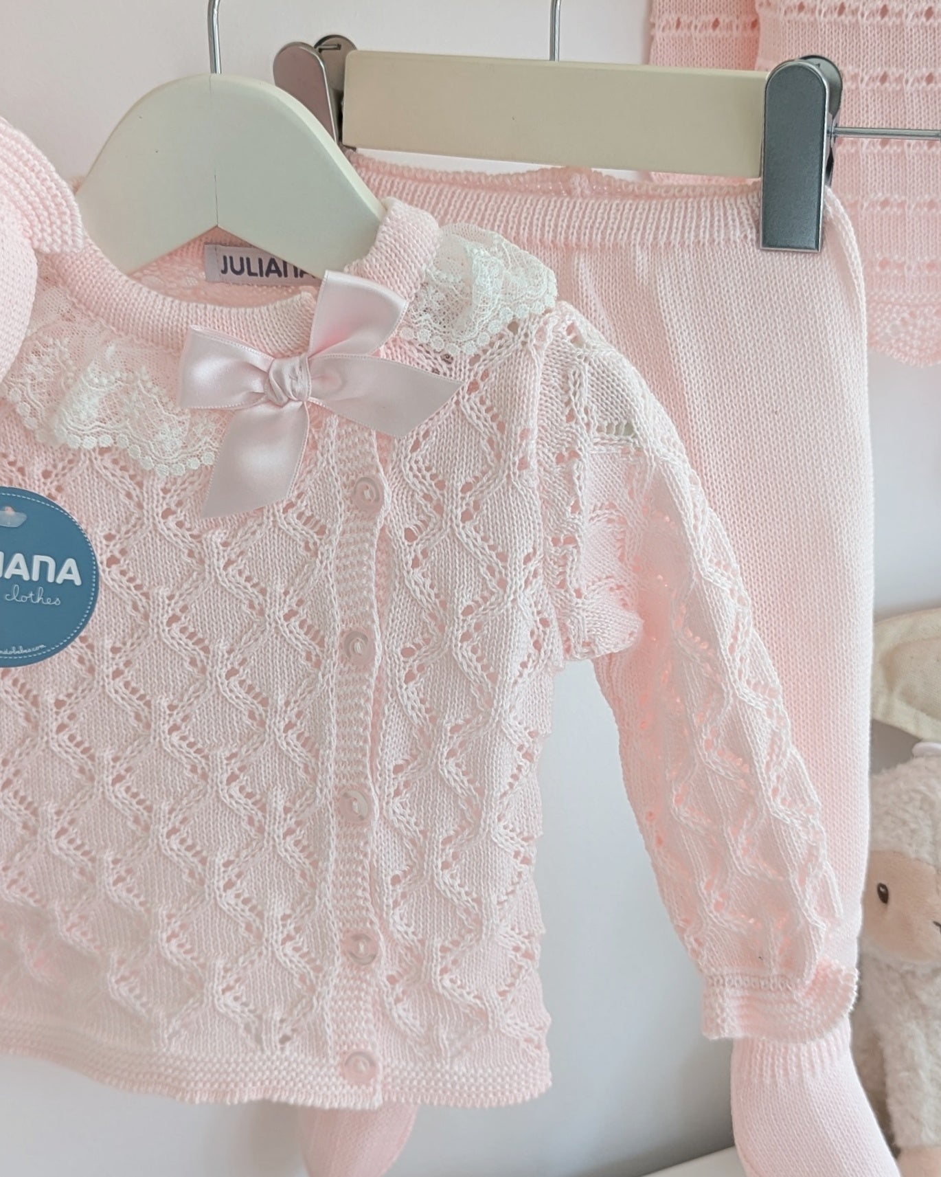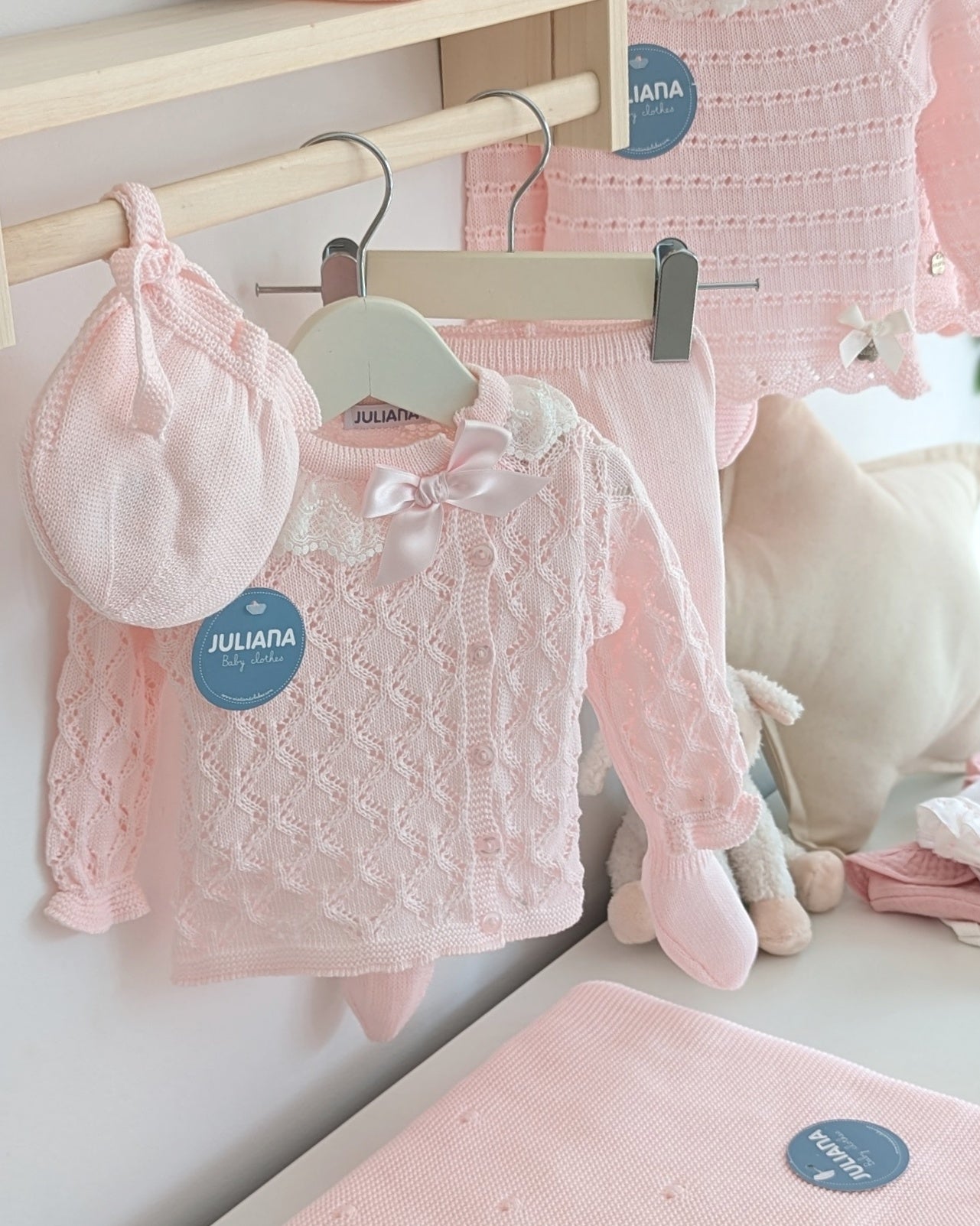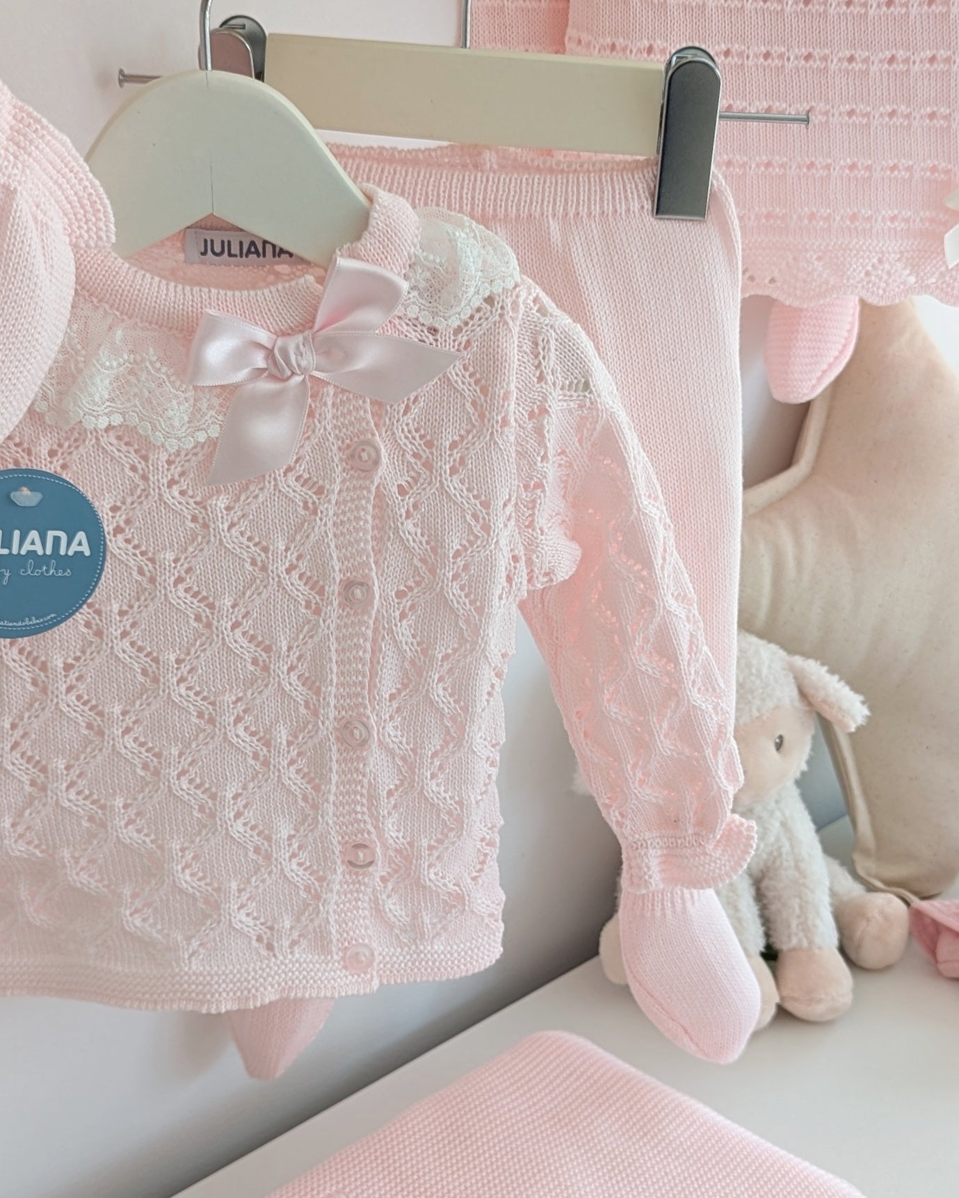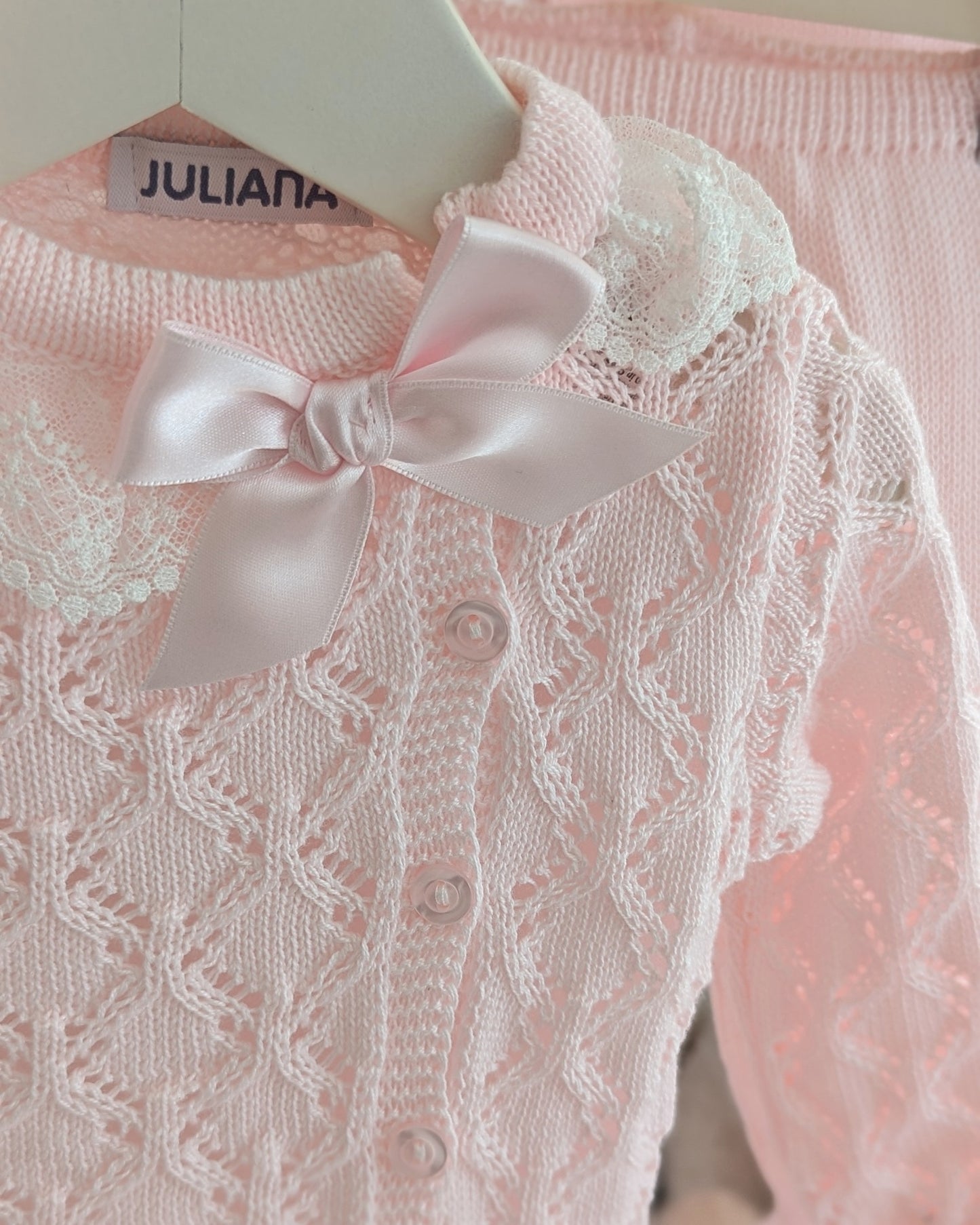 Conjunto Polaina Calado Lazo Rosa - Colección Tramontana de Juliana