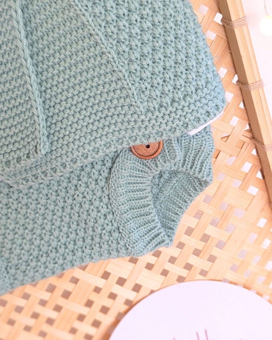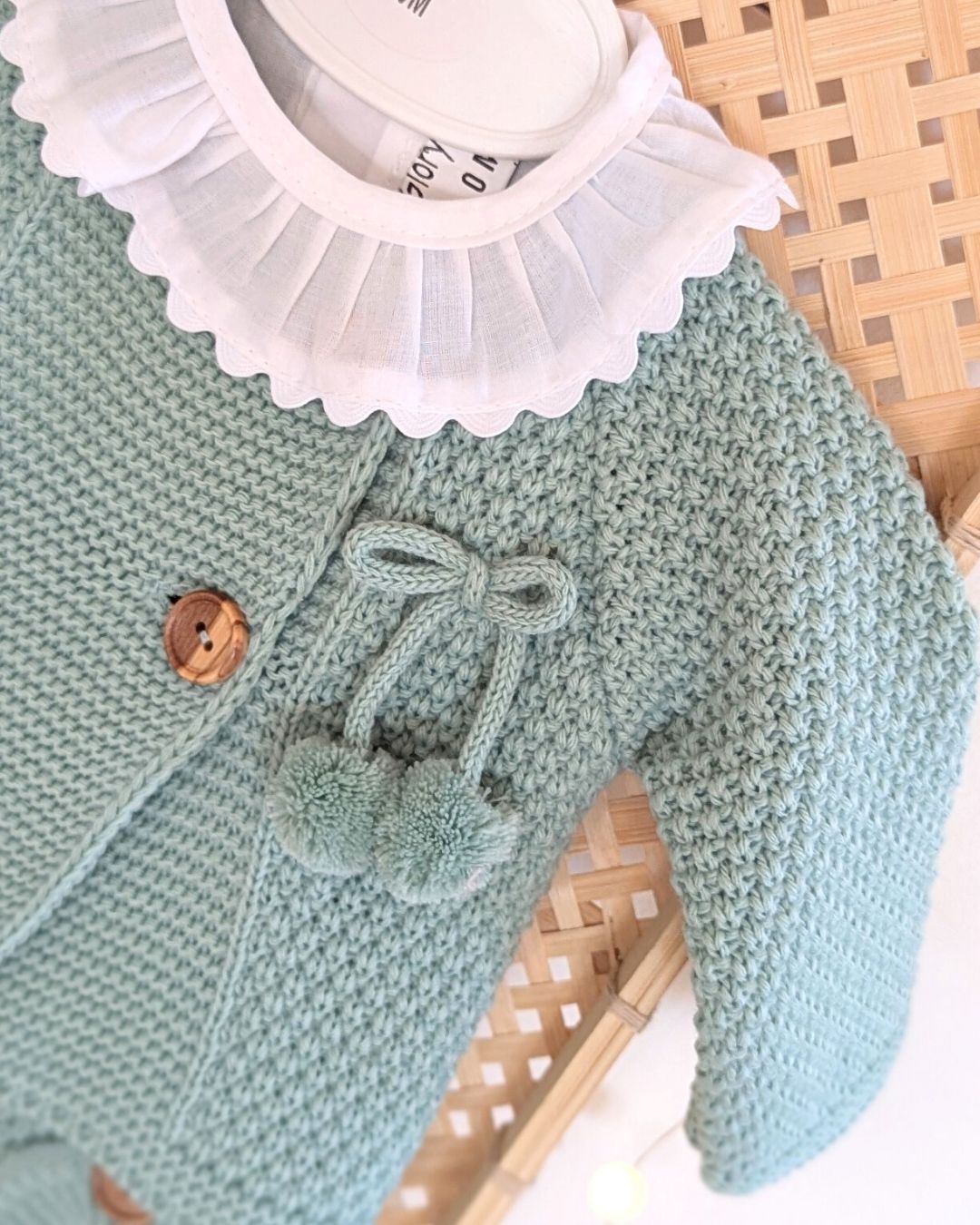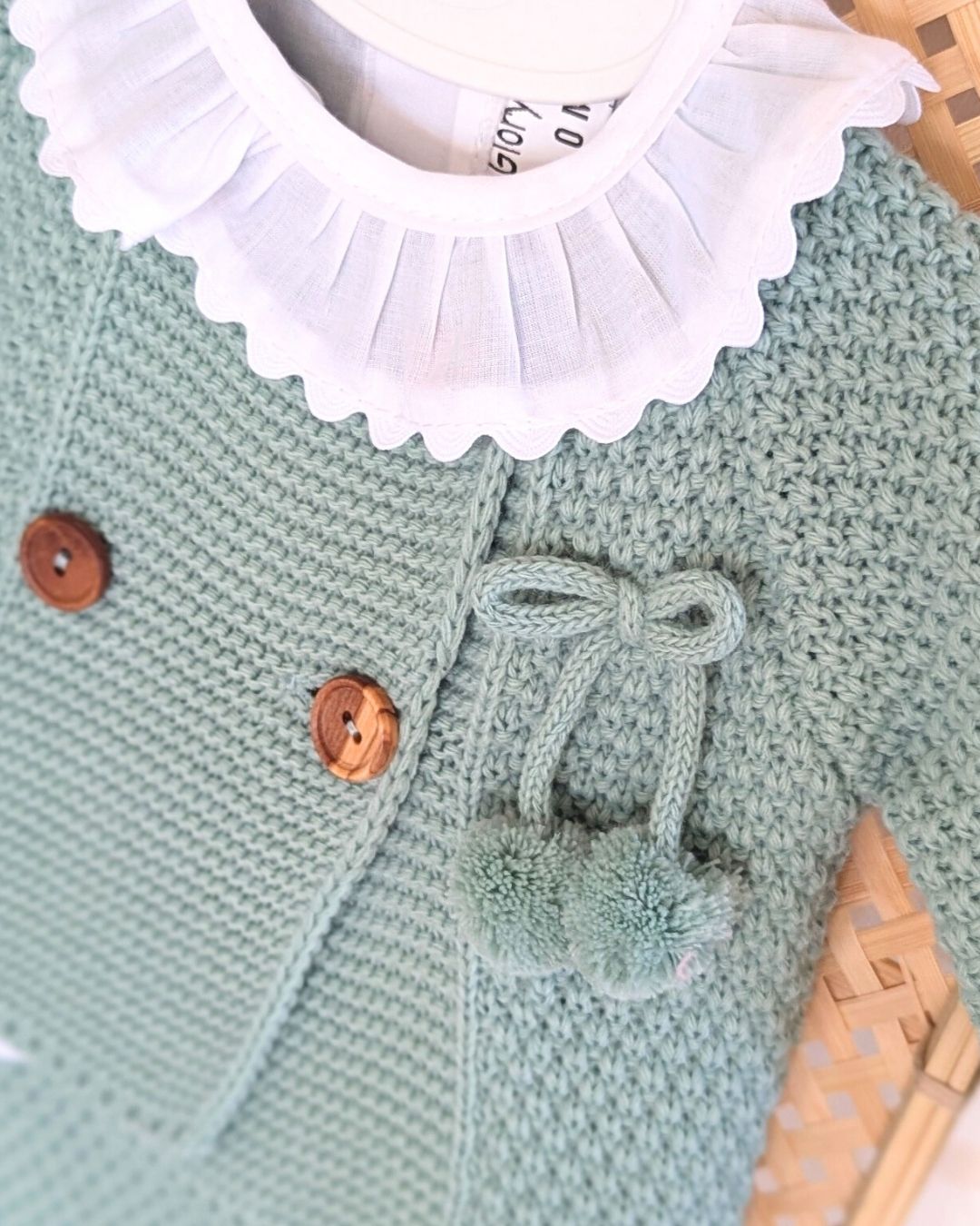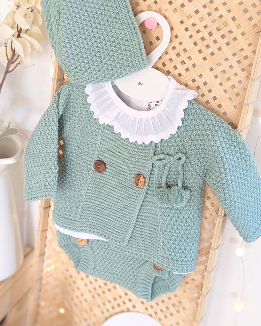 - El conjunto incluye rebeca, blusa, braguita y capota.