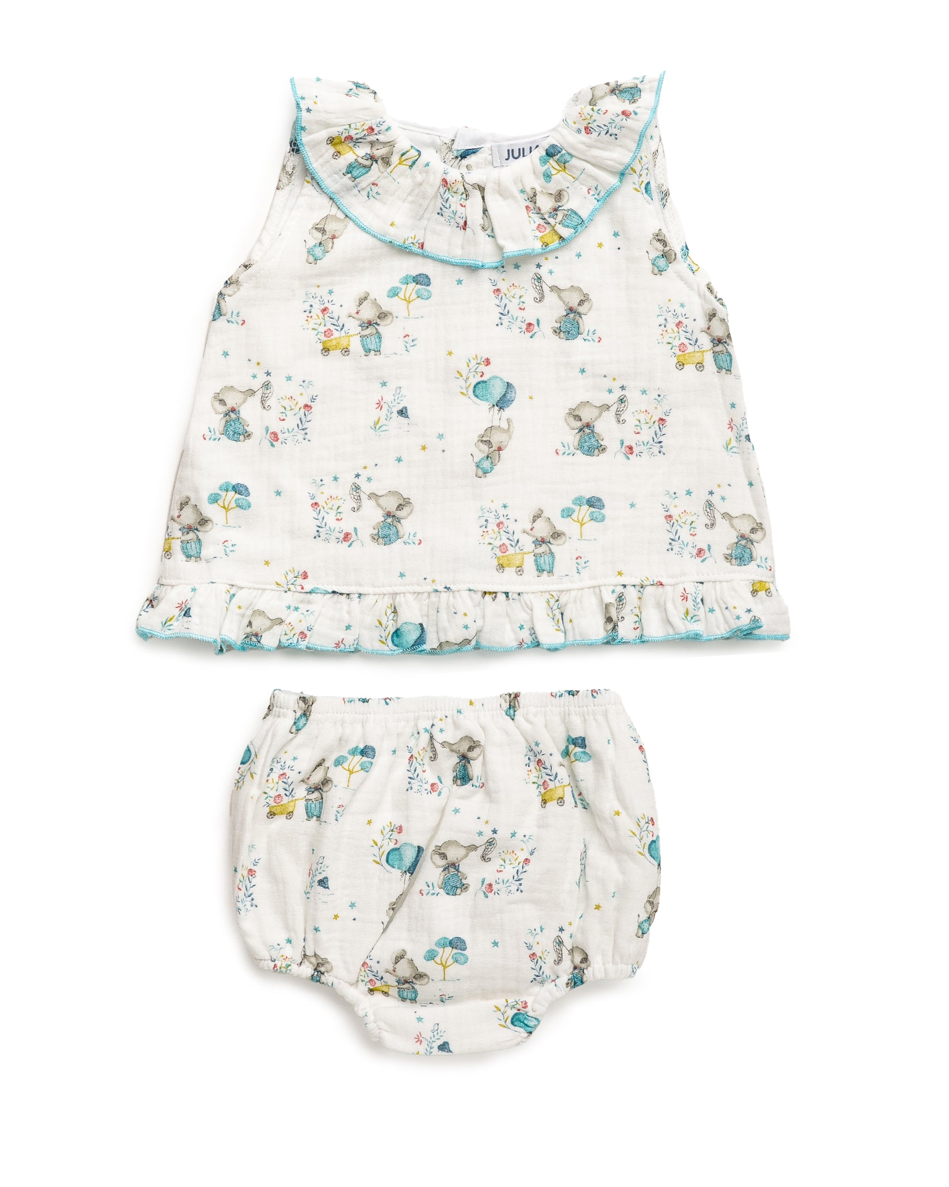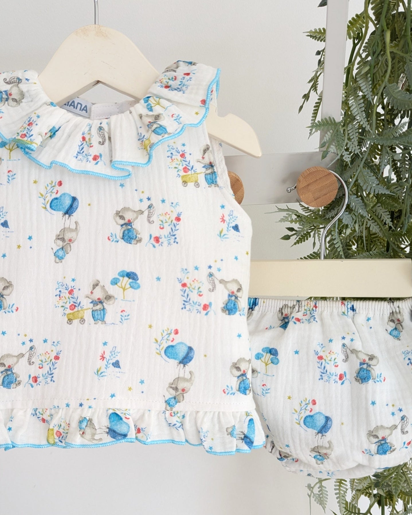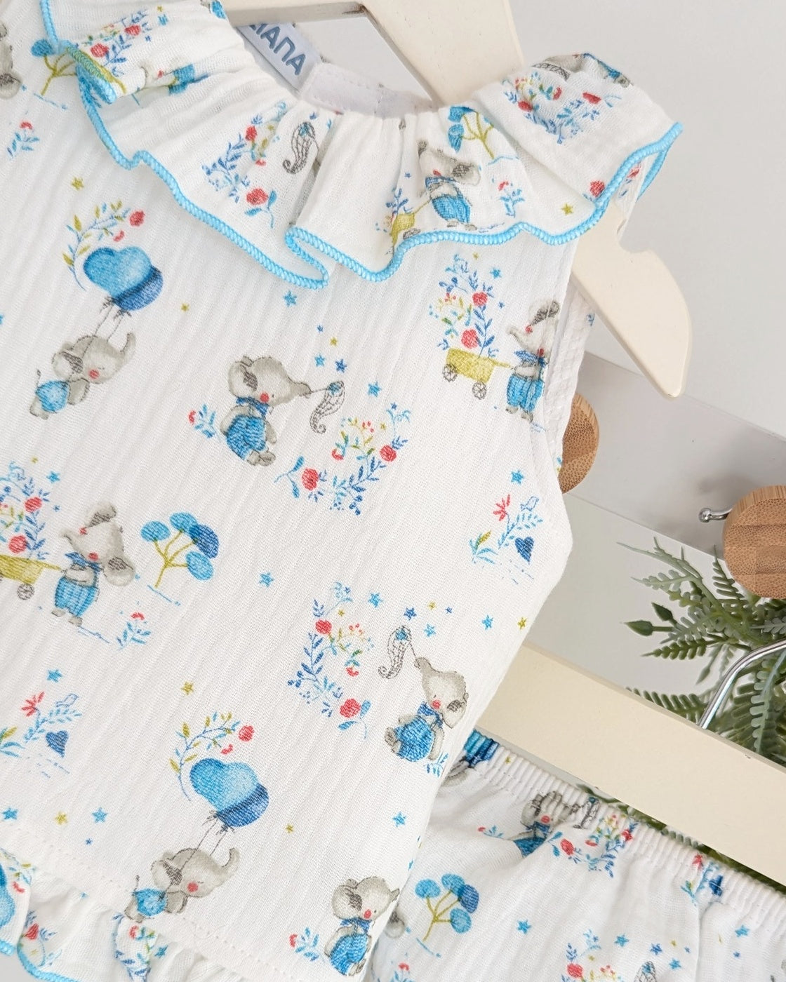 - Conjunto Tela Elefantes Turquesa - Juliana