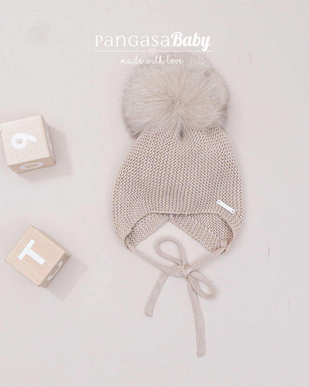 Gorro Orejero Pompón Pelo Arena - Pangasa Baby