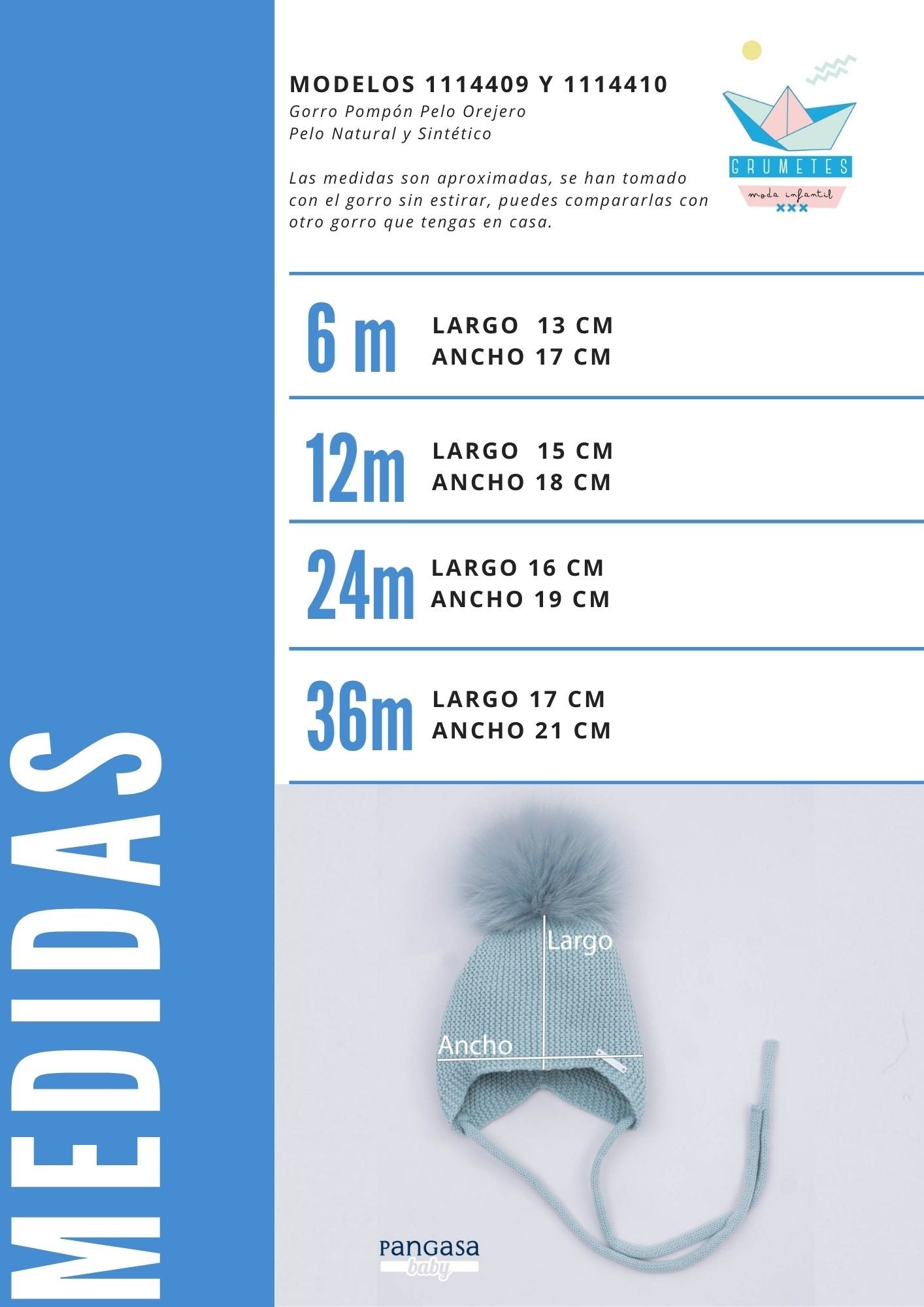 ▶ Composición: Tejido de punto (100% Dralón Hipoalergénico). Pompón Pelo sintético 100% acrílico. Pompón pelo natural 100%.