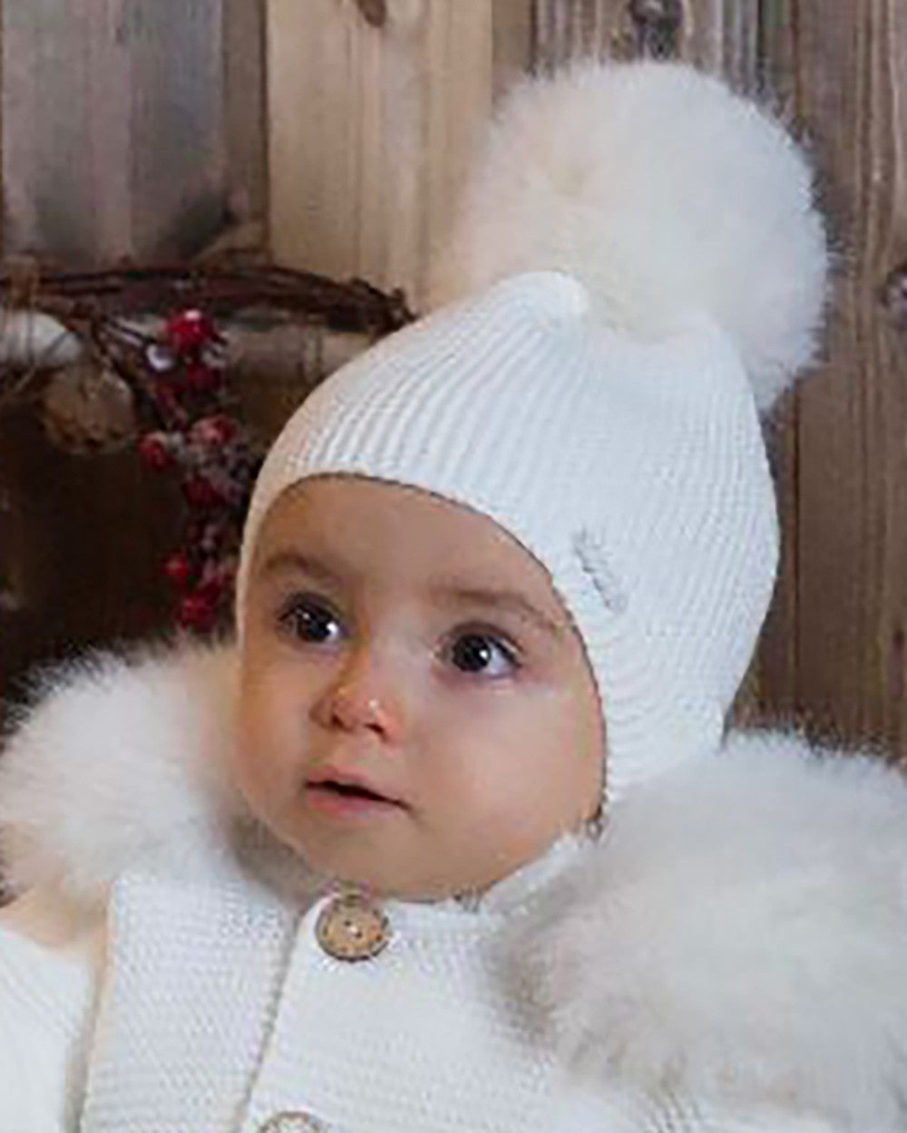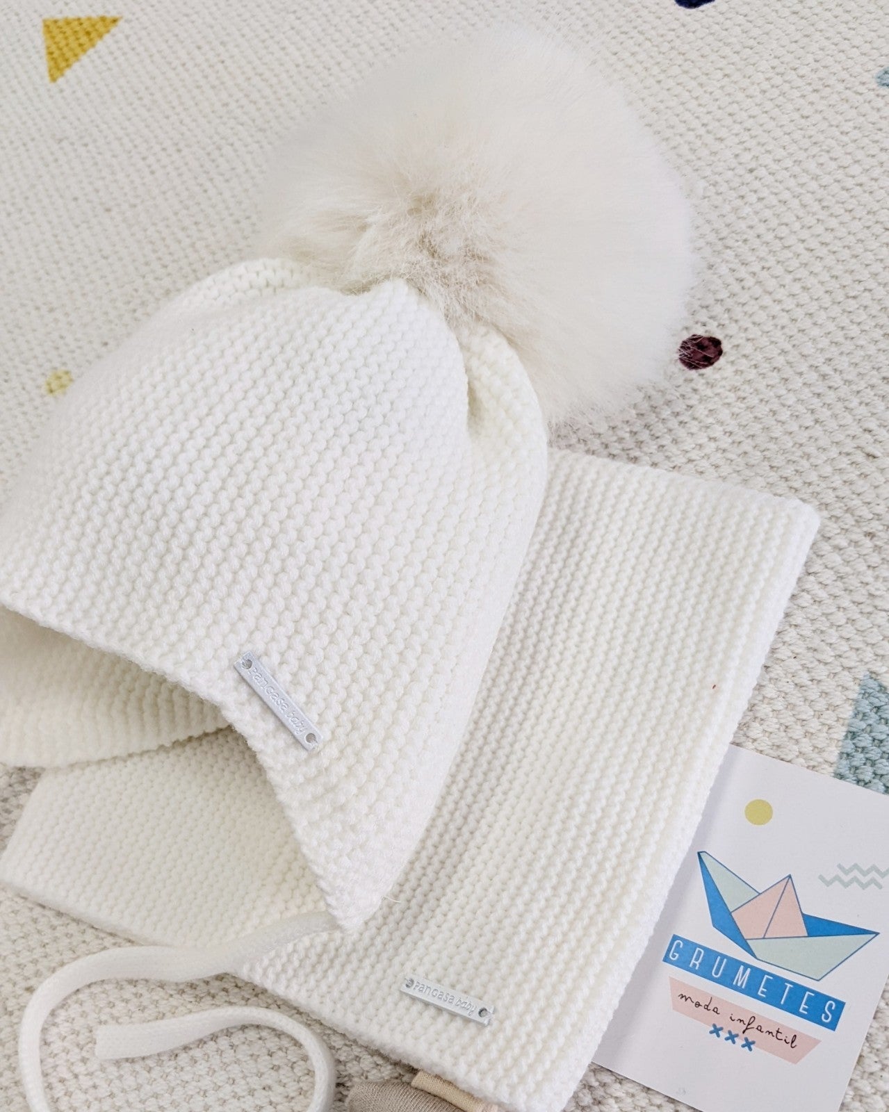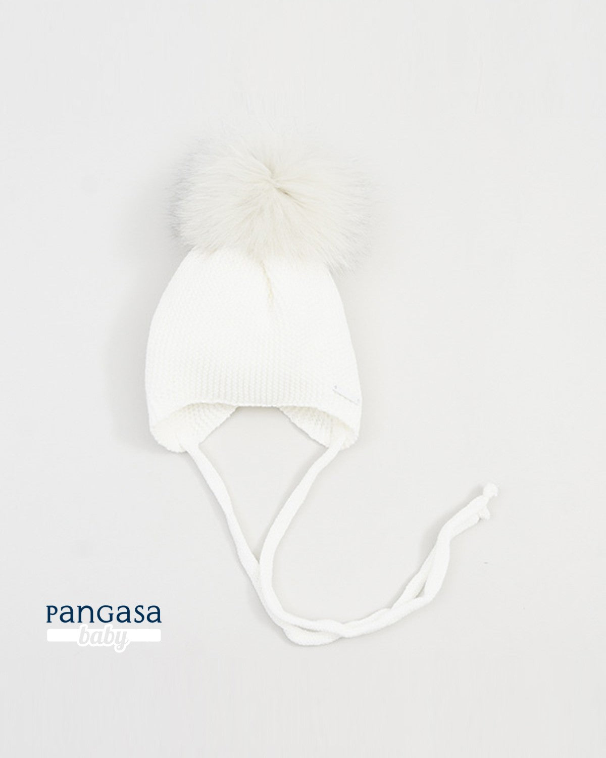 Comprar online el Gorro Orejero Pompón Pelo Marfil para bebé de la Nueva Colección Otoño Invierno 2025 2026 de Pangasa Baby en www.tiendagrumetes.es