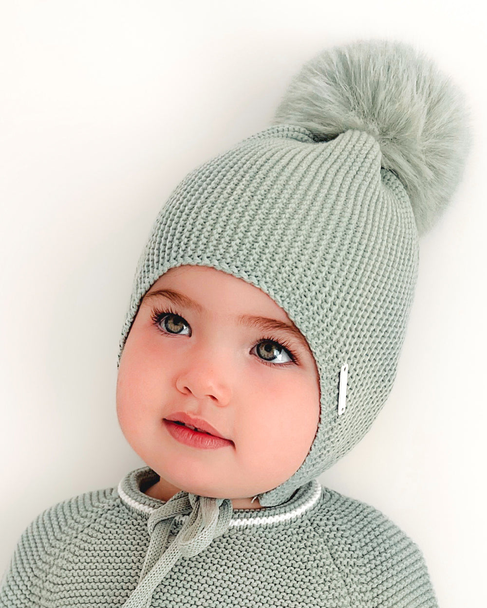 Gorro Orejero Pompón Pelo Verde Mint - Pangasa Baby