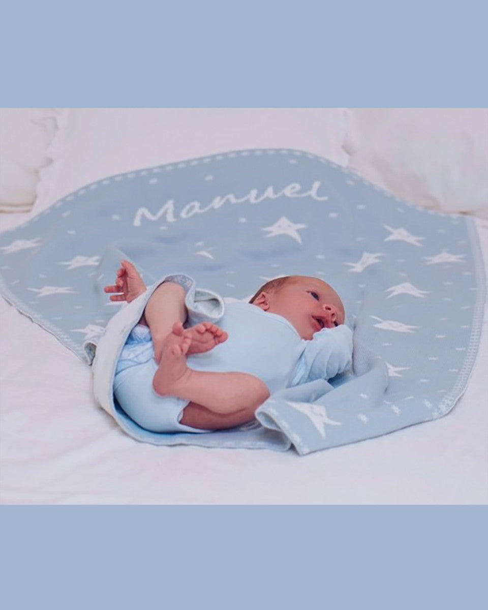 Mantita Personalizada Estrellas Celeste Empolvado - Pangasa Baby