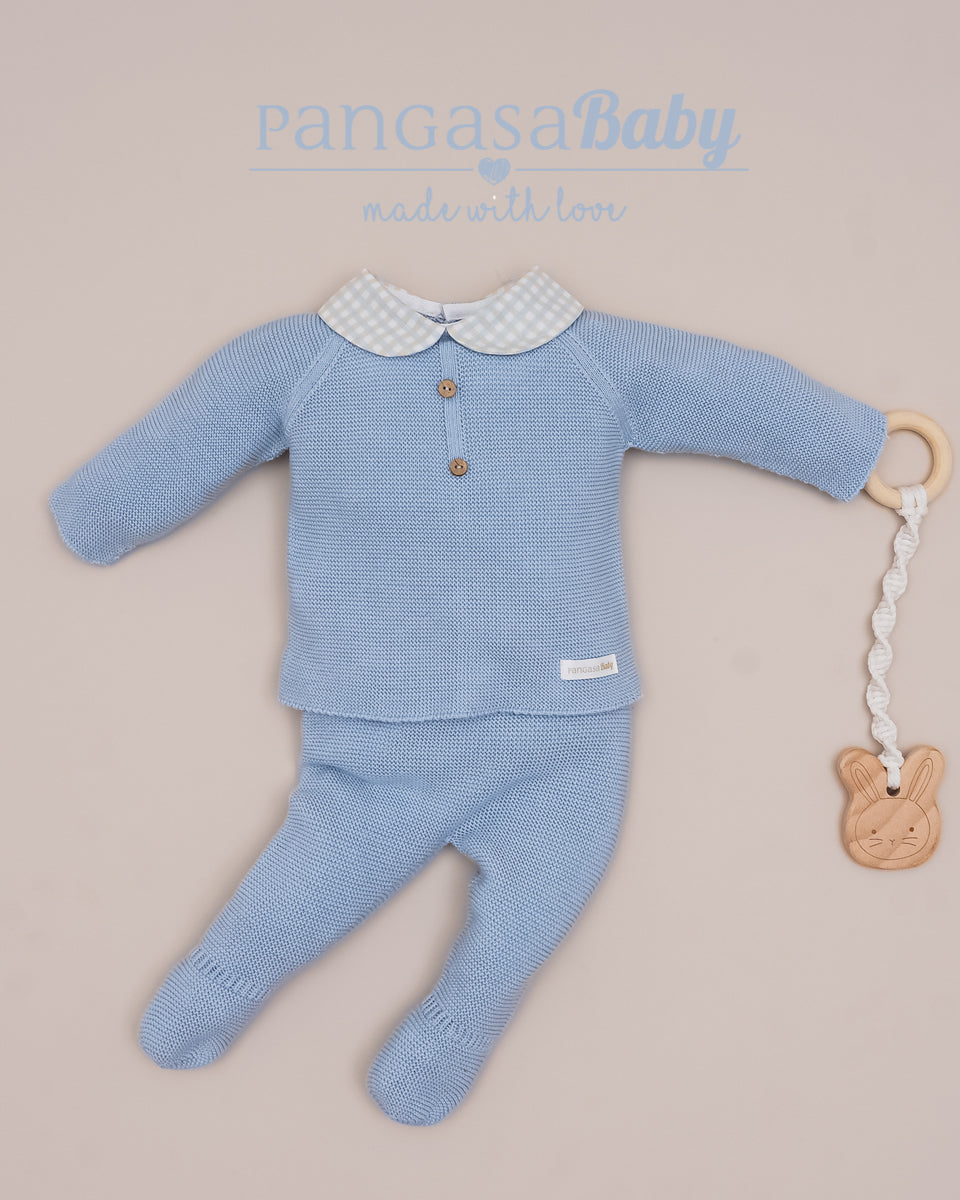 👶 Primera Puesta Cuello Bebé Cuadros Celeste Empolvado - Pangasa Baby