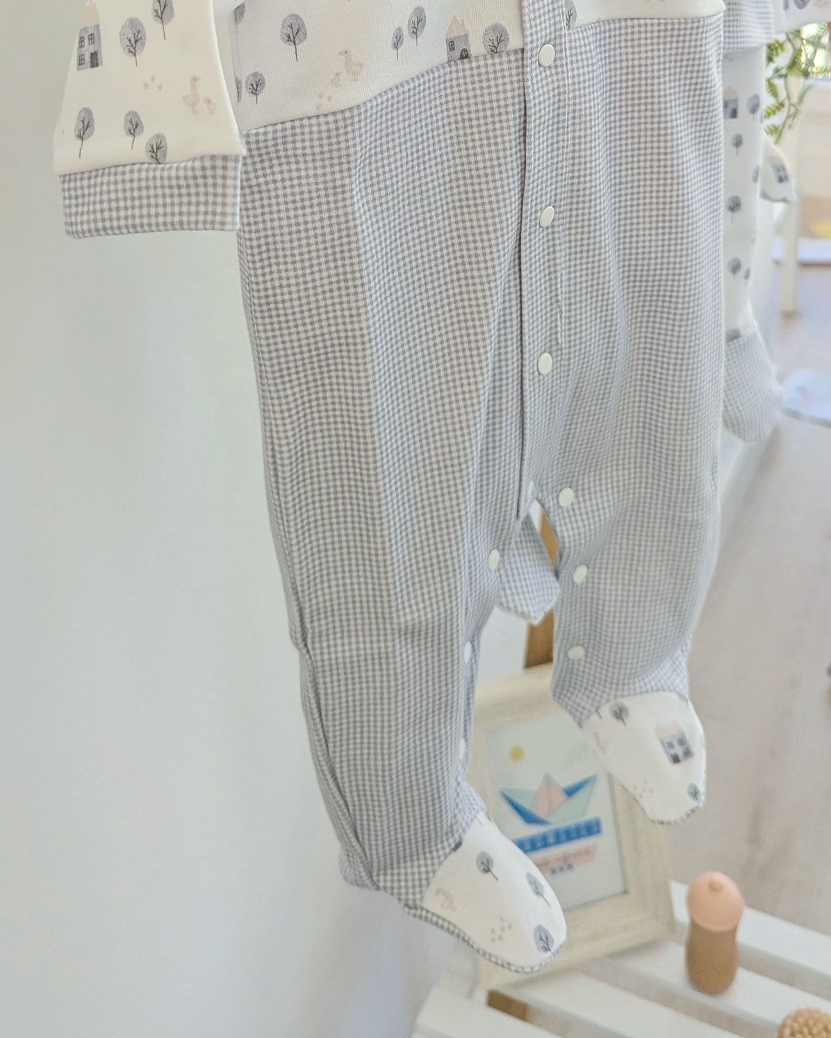 Pelele ideal para los primeros días de tu bebé. Está fabricado en algodón 100% de máxima calidad totalmente indicado para pieles atópicas.