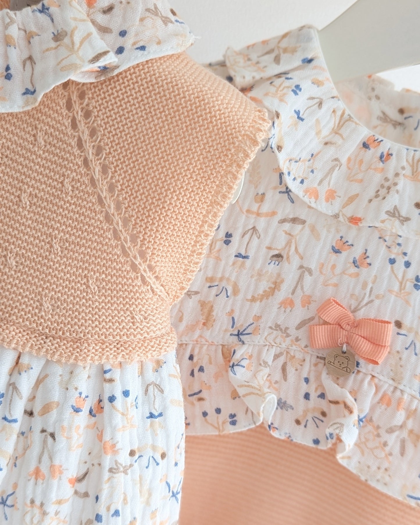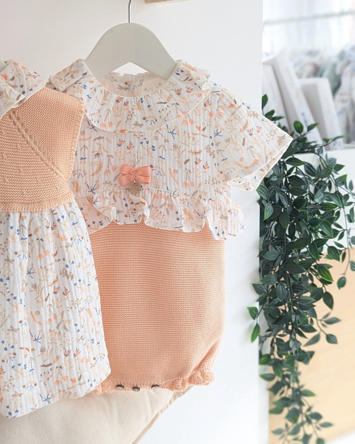 👶 Pelele Cuerpo Tela Flores Melocotón - Pangasa Baby