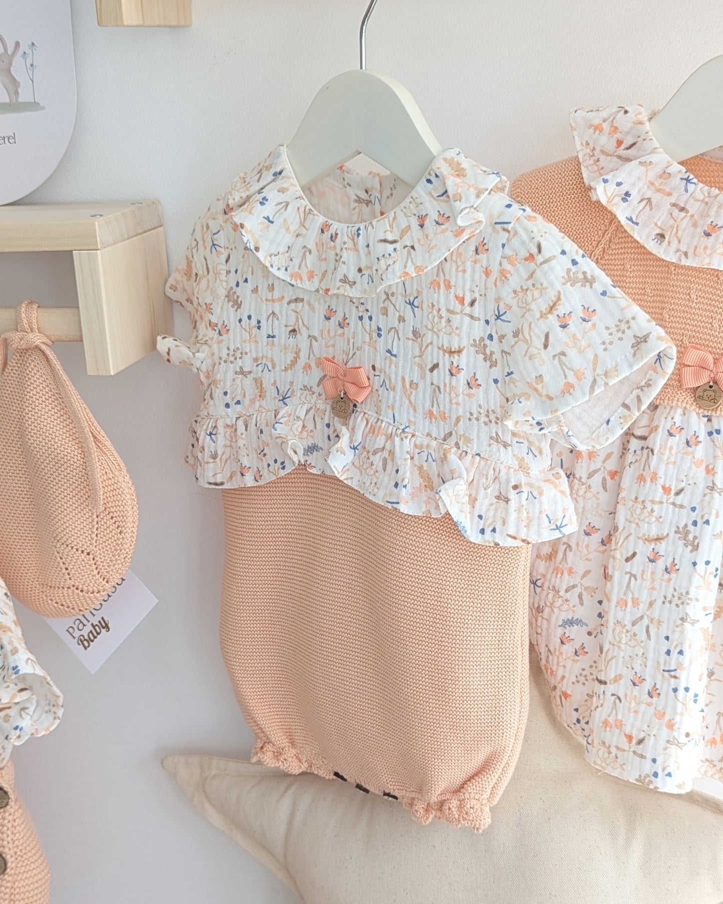 Pelele Cuerpo Tela Flores Melocotón Familia Honey Peach - Pangasa Baby