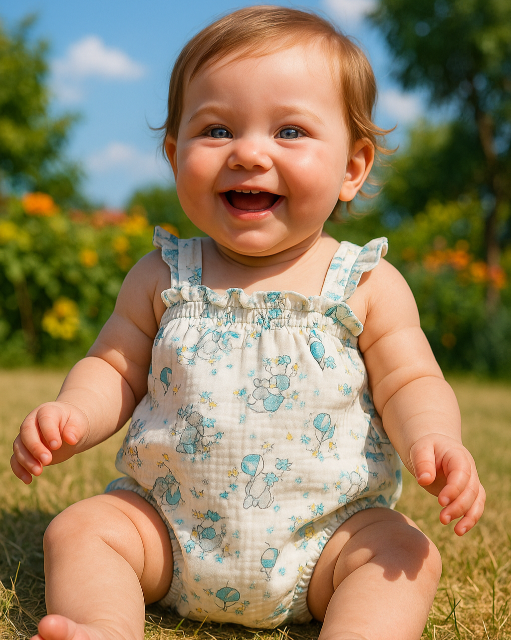 👶 Pelele de tela estampada ideal para la primera puesta y los primeros paseos con tu bebé. desde 0 hasta 48 meses.