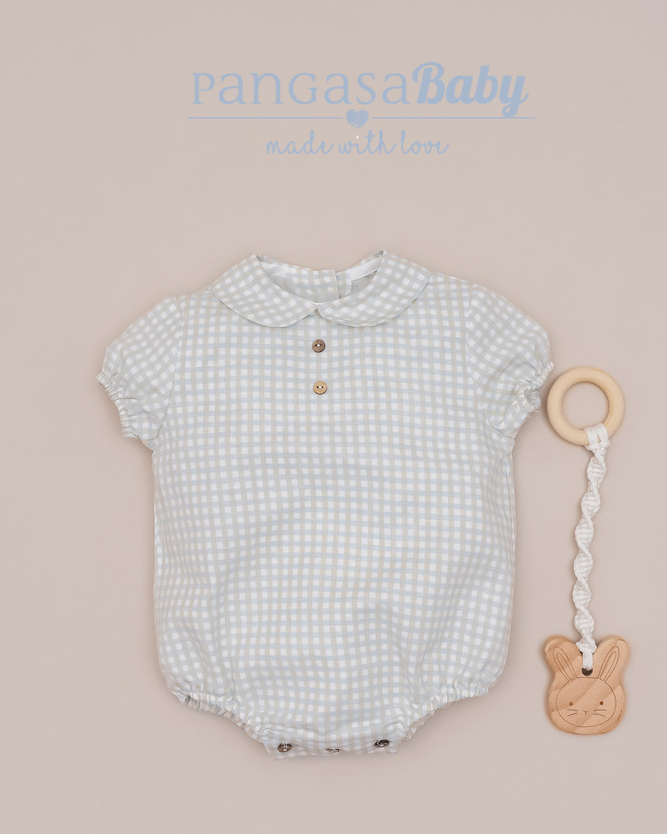 🍼 Pelele Tela Cuadros Celeste Empolvado - Pangasa Baby