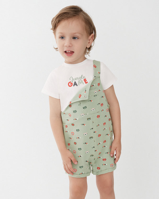 Conjunto de dos piezas para recién nacido niño de 1 a 24 meses. Camiseta en color blanco con cuello redondo y manga corta, diseñada para un ajuste cómodo y fácil de combinar.