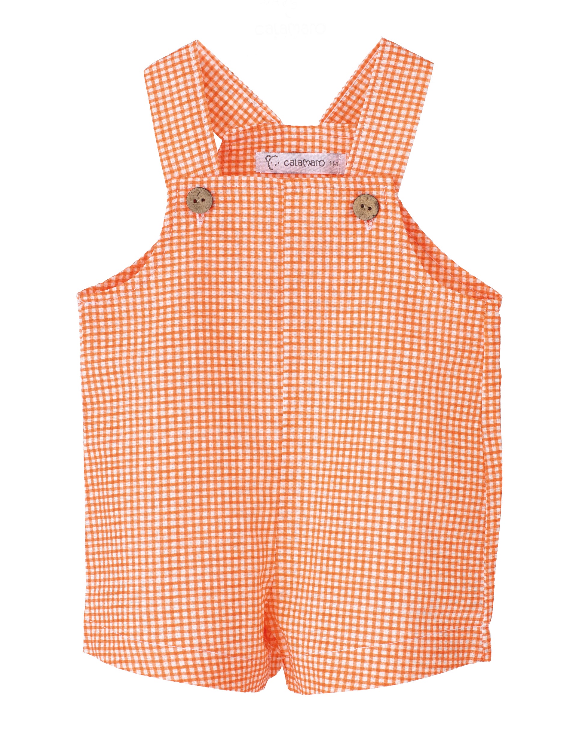👶 Peto fresquito y super alegre para bebés confeccionado en un tejido muy fino de algodón de cuadritos naranja.