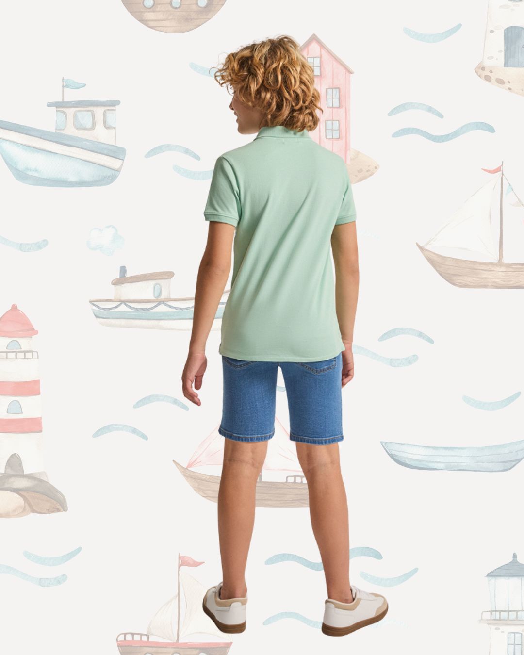 ✨ De color verde agua, este polo de manga corta para niño destaca por su diseño cómodo y fresco, con botones en la parte frontal y un sutil detalle en el cuello que lo convierte en una prenda versátil, perfecta para el día a día o para ocasiones más especiales.