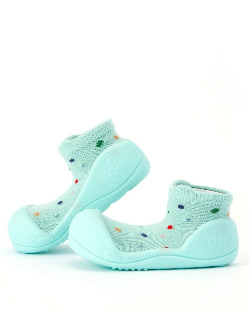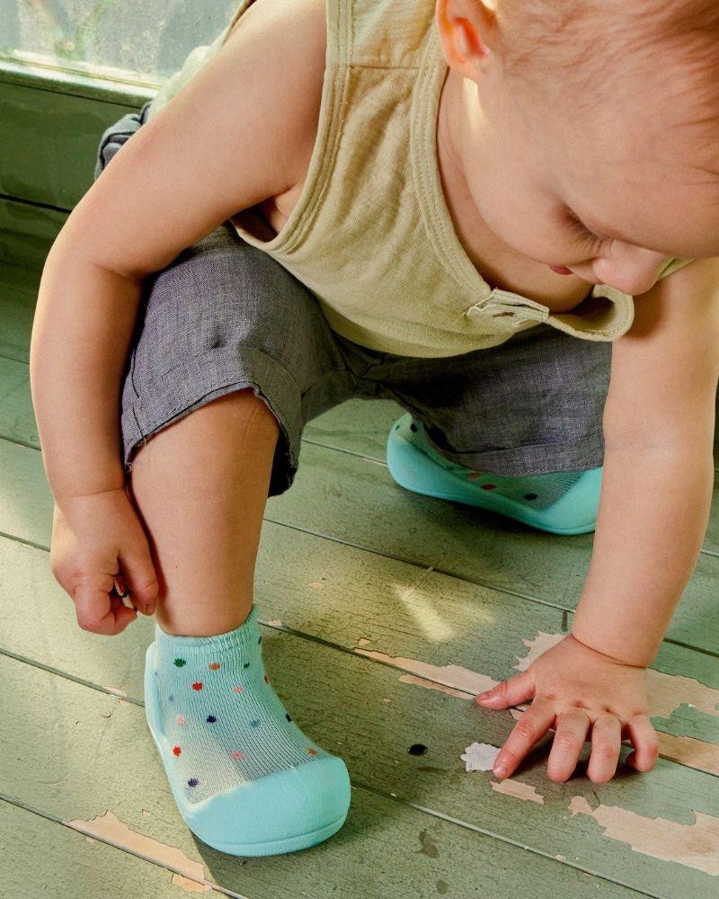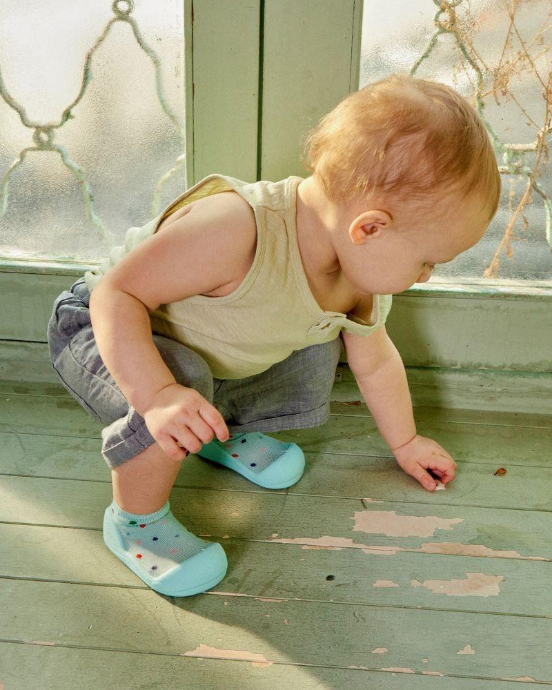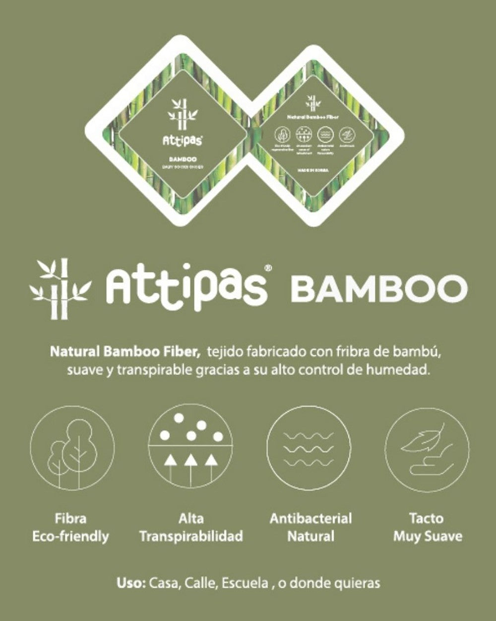 Attipas, el calzado que respeta el desarrollo natural del pie de tu bebé, ¡donde sea que vayas! 🏠🏙️🎠 Descubre la comodidad y suavidad del tejido de bambú, perfecto para uso en casa, en la calle o ¡dondequiera que te lleven tus aventuras! 🌈💚