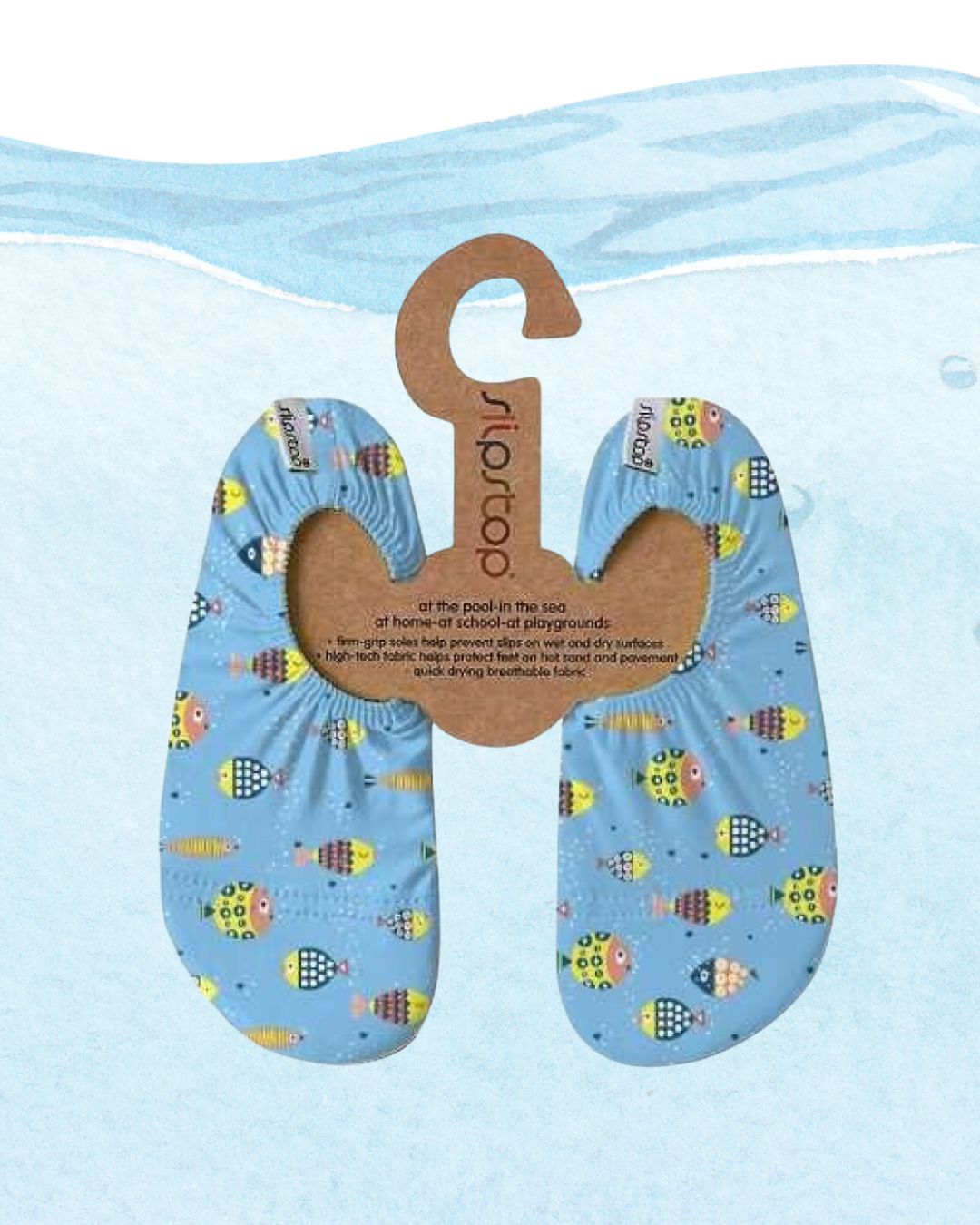 Slip Stop niños, escarpines antideslizantes para playa, zapatillas piscina infantiles, calzado acuático bebé, Slipstop peces, escarpines protección solar UV, zapatos agua niños antideslizantes