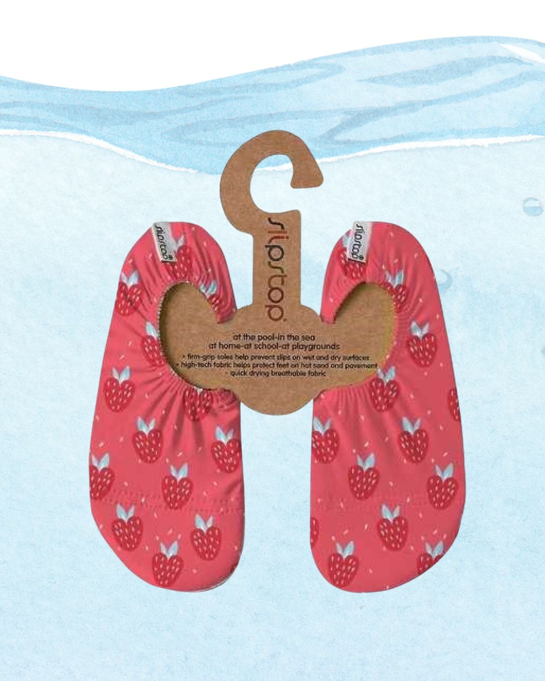 Slip Stop fresas, zapatillas antideslizantes niños piscina, calzado acuático infantil, escarpines antideslizantes con frutas, zapatillas playa niña verano, Slipstop originales para niños